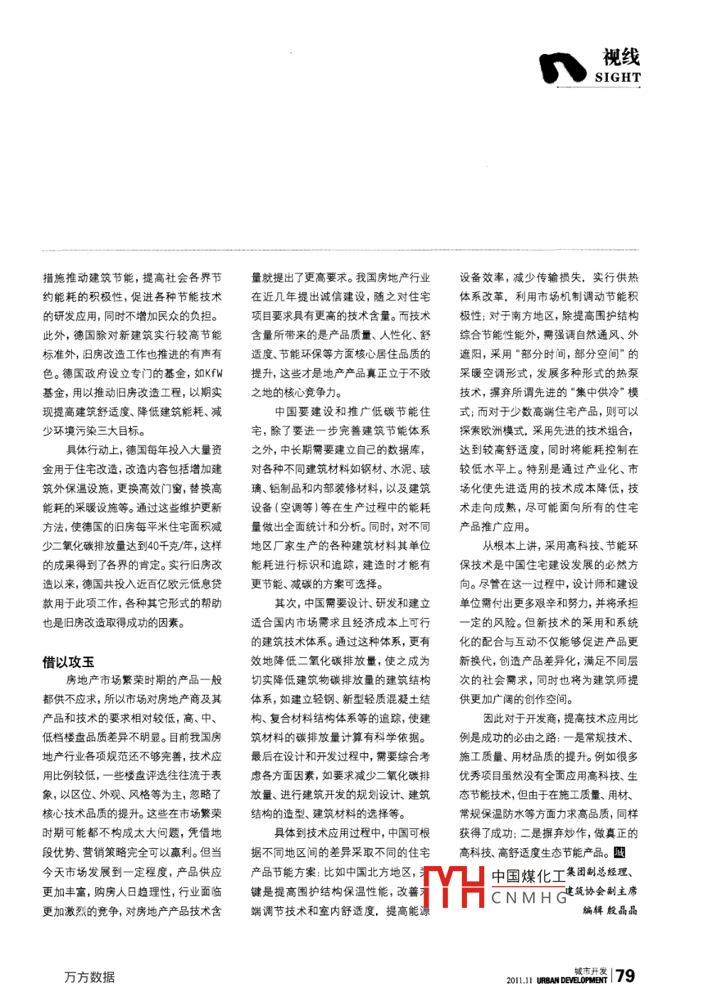 他山之石助我能如回邁有限陰資投∏■任宅語麋,降低遙能新及運■奧用,少劉環(huán)壤的員面劇國,是后住宅嚴品發(fā)展的王菌。文/盧求德國是一個能源緊缺的國家,能源供應(yīng)在很大程度上依賴進口。由于緯度較高,德國冬季較長,建筑供暖耗能成為德國政府著力解決的一個關(guān)鍵領(lǐng)域。多年來,政府通過制定和改進建筑保溫技術(shù)規(guī)范等措施,不斷發(fā)掘建筑節(jié)能的潛力。而德國建筑節(jié)能技術(shù)的研究與應(yīng)用,不僅是出于經(jīng)濟利益的考慮,也是為了從根本上減少二氧化碳等有害氣體排放量,減少全球范圍內(nèi)的溫室效應(yīng),保護人類生存的環(huán)境。隨著市場機制的完善與消費者的成訂發(fā)布了本州建筑節(jié)能標準,此后,相比如從2002年起德國實行的建熟,作為最大的投資與耐久商品,住宅也繼在80年代和90年代對標準作了幾次筑節(jié)能條例EnEV2002,就已經(jīng)從控制同其他工業(yè)產(chǎn)品一樣,需要通過提高技修訂,直至2001年推出最新版本的標單項建筑維護結(jié)構(gòu)(如外墻、外窗、屋術(shù)投入來提升產(chǎn)品質(zhì)量,從而提升產(chǎn)品準。加州節(jié)能標準分為規(guī)定性指標和頂)的最低保溫隔熱指標,轉(zhuǎn)化為對建的市場競爭力和生命力。而改善住宅舒功能性指標兩部分,前者必須強制執(zhí)筑物真正的能量消耗量的嚴格控制,有適度,延長住宅使用壽命,降低住宅日常行,后者提供達到規(guī)定性指標的各種很強的實際操作性。首先是實行建筑維護開支,離不開綠色低碳、生態(tài)節(jié)能設(shè)方式和途徑。標準的先進性、實用性能耗定量化、建筑能耗證書系統(tǒng),其次和技術(shù)的應(yīng)用。因此,如何通過有限的和指標控制程度的靈活性,激發(fā)了設(shè)新建住宅必須出具采暖所需能耗量和資金投入提高住宅舒適度,降低建筑能計師、開發(fā)商等標準使用者的創(chuàng)住宅能耗核心值,分項列出所需電能耗及運營費用,減少對環(huán)境的負面影響,神,同時也為標準的下一輪修訂燃油、燃氣、燃煤數(shù)量,制成建筑能耗是今后住宅產(chǎn)品發(fā)展的主要趨勢了基礎(chǔ)。計算表。為什么要建立建筑能耗證書歐美發(fā)達國家自1973年全球能源美國還鼓勵有條件的州制訂本州系統(tǒng)?買一輛私家汽車,百公里油耗多危機后就開始高度重視節(jié)能,近幾年的節(jié)能政策,并要求以多樣化的扶持少廠家有明確的技術(shù)資料說明,買冰在這方面有了比較成熟的發(fā)展。我們舉措,推進建筑節(jié)能技術(shù)的發(fā)展和節(jié)箱,顧客都要買節(jié)能冰箱,廠家也有技可以通過對國外經(jīng)驗的借鑒解決中國能政策的實施。據(jù)此,美國住房和坡術(shù)資料說明冰箱每天耗電量。而住宅每自己的發(fā)展問題,從而提高項目品質(zhì)。市發(fā)展部提供了便于獨戶住宅翻新或年的能耗費用更是對使用者一筆巨大裝修時節(jié)省能源的高能源效率房屋開古,律立律飴能耗證書系統(tǒng)對控他山之石押貸款,并且對于節(jié)能建筑還中國煤化工非常有效的手段。美國加州在20世紀70年代末就制收上的優(yōu)惠。CNMHG面,德國也有相關(guān)78獎 ELOPMENT 2011.11視線SIGHT措施推動建筑節(jié)能,提高社會各界節(jié)量就提出了更高要求。我國房地產(chǎn)行業(yè)設(shè)備效率,減少傳輸損失,實行供熱約能耗的積極性,促進各種節(jié)能技術(shù)在近幾年提出誠信建設(shè),隨之對住宅體系改革,利用市場機制調(diào)動節(jié)能積的研發(fā)應(yīng)用,同時不增加民眾的負擔。項目要求具有更高的技術(shù)含量。而技術(shù)極性;對于南方地區(qū),除提高圍護結(jié)構(gòu)此外,德國除對新建筑實行較高節(jié)能含量所帶來的是產(chǎn)品質(zhì)量、人性化、舒綜合節(jié)能性能外,需強調(diào)自然通風、外標準外,舊房改造工作也推進的有聲有適度、節(jié)能環(huán)保等方面核心居住品質(zhì)的遮陽,采用“部分時間,部分空間”的色。德國政府設(shè)立專門的基金,如KfM提升,這些才是地產(chǎn)產(chǎn)品真正立于不敗暖空調(diào)形式,發(fā)展多種形式的熱泵基金,用以推動舊房改造工程,以期實之地的核心競爭力技術(shù),摒棄所謂先進的“集中供冷"?,F(xiàn)提高建筑舒適度、降低建筑能耗、減國要建設(shè)和推廣低碳節(jié)能住式;而對于少數(shù)高端住宅產(chǎn)品,則可以少環(huán)境污染三大目標。宅,除了要進一步完善建筑節(jié)能體系探索歐洲模式,采用先進的技術(shù)組合,具體行動上,德國每年投入大量資之外,中長期需要建立自己的數(shù)據(jù)庫達到較高舒適度,同時將能耗控制在金用于住宅改造,改造內(nèi)容包括增加建對各種不同建筑材料如鋼材、水泥、玻較低水平上。特別是通過產(chǎn)業(yè)化、市筑外保溫設(shè)施,更換高效門窗,替換高璃、鋁制品和內(nèi)部裝修材料,以及建筑場化使先進適用的技術(shù)成本降低,技能耗的采暖設(shè)施等。通過這些維護更新設(shè)備(空調(diào)等)等在生產(chǎn)過程中的能耗術(shù)走向成熟,盡可能面向所有的住宅方法,使德國的舊房每平米住宅面積減量做出全面統(tǒng)計和分析。同時,對不同產(chǎn)品推廣應(yīng)用。少二氧化碳排放量達到40千克/年,這樣地區(qū)廠家生產(chǎn)的各種建筑材料其單位從根本