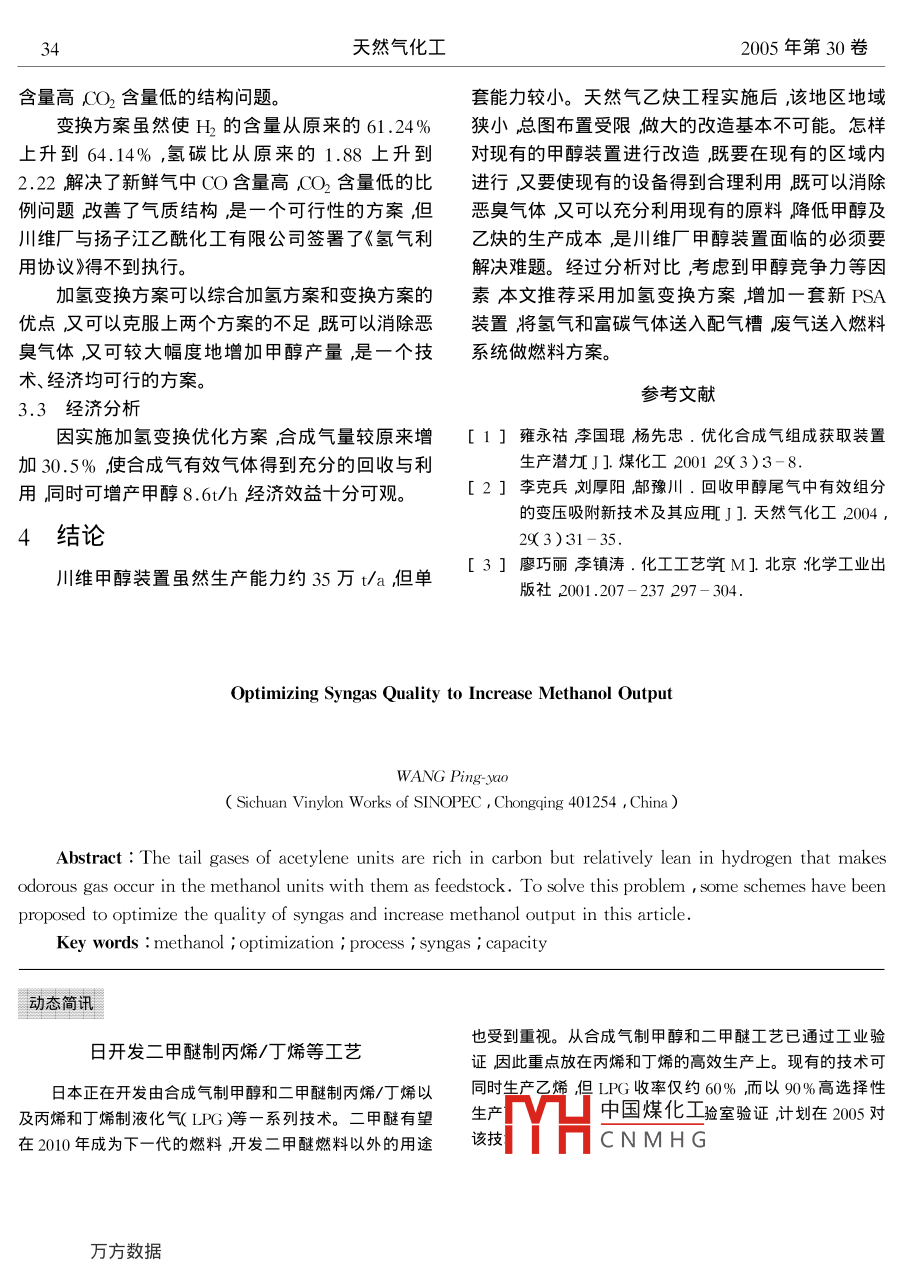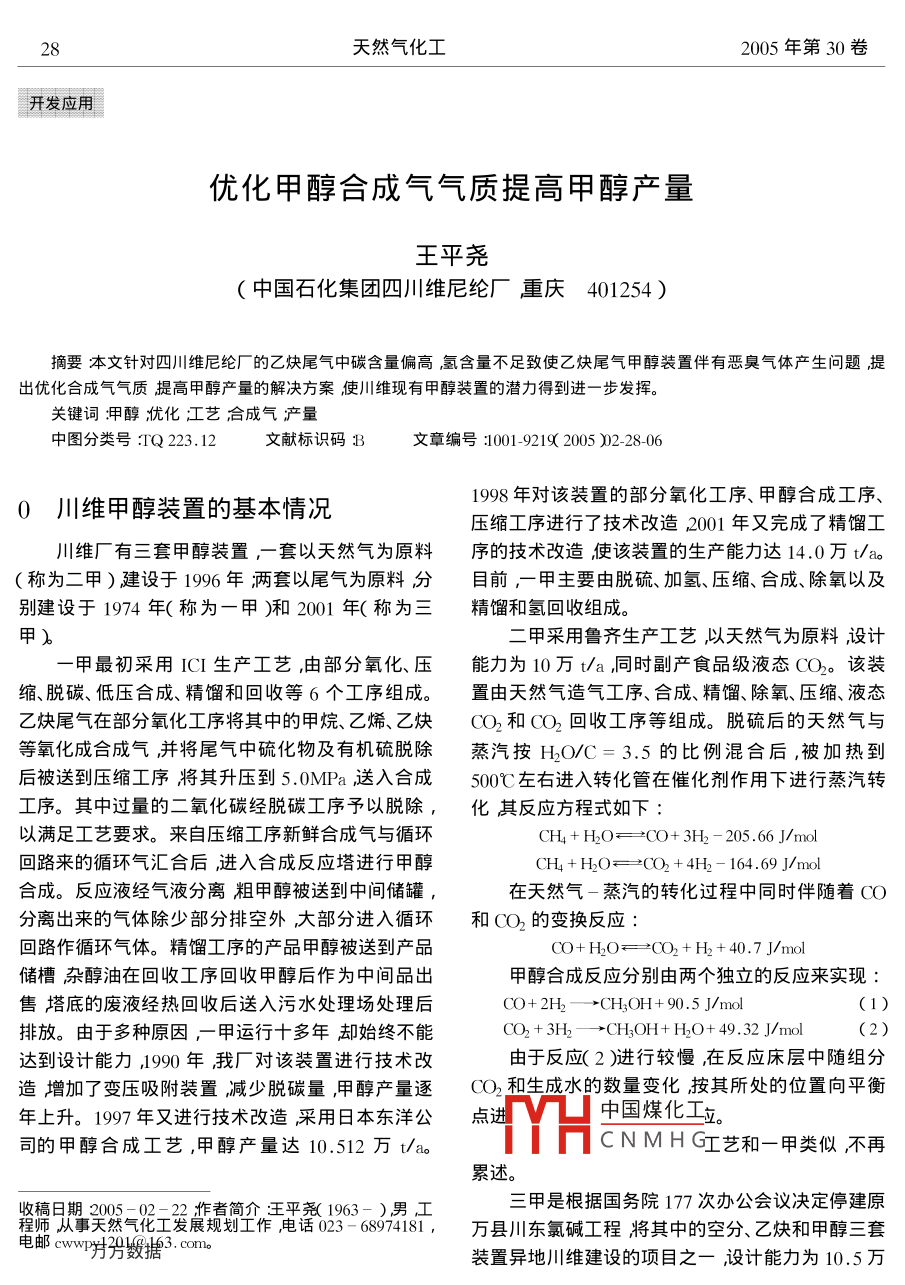優(yōu)化甲醇合成氣氣質(zhì)提高甲醇產(chǎn)量