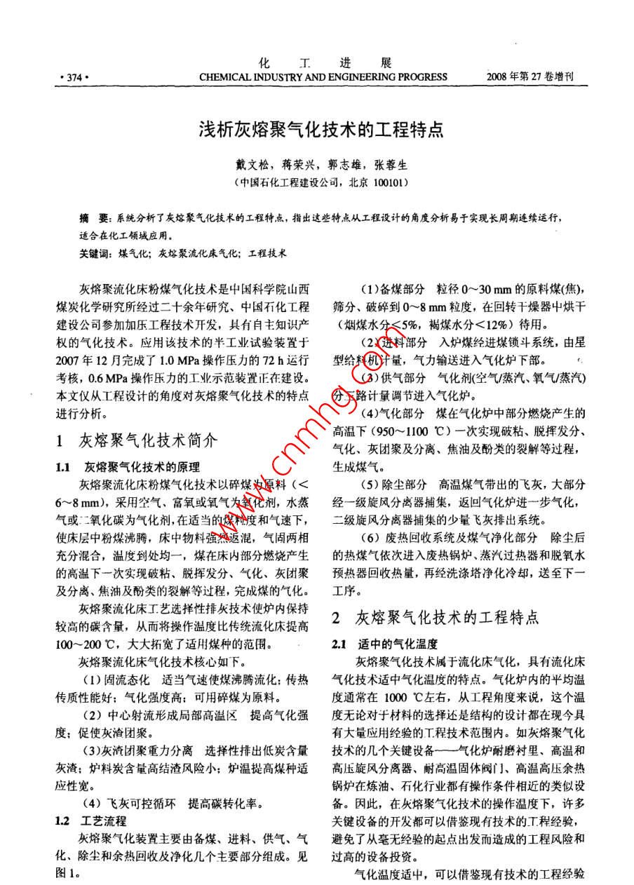 淺析灰熔聚氣化技術(shù)的工程特點(diǎn)
