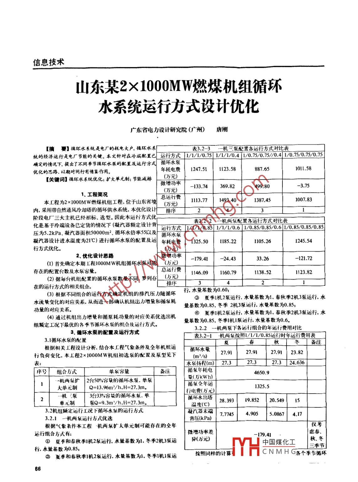 山東某2 1000MW燃煤機(jī)組循環(huán)水系統(tǒng)運(yùn)行方式設(shè)計(jì)優(yōu)化