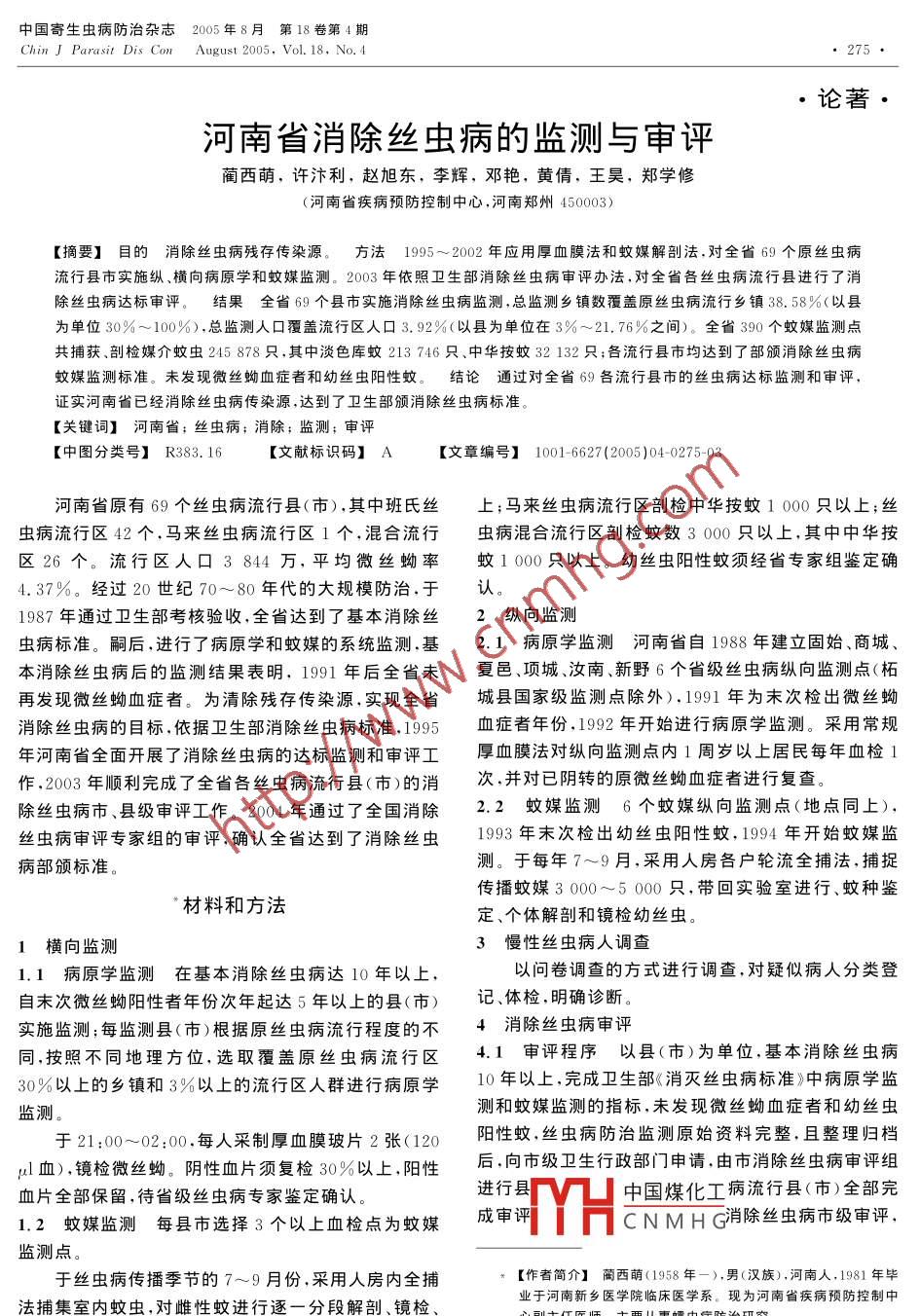 河南省消除絲蟲病的監(jiān)測與審評