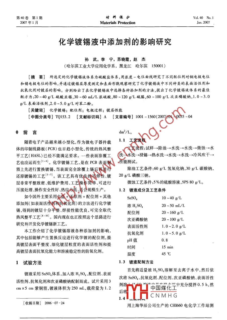 化學(xué)鍍錫液中添加劑的影響研究