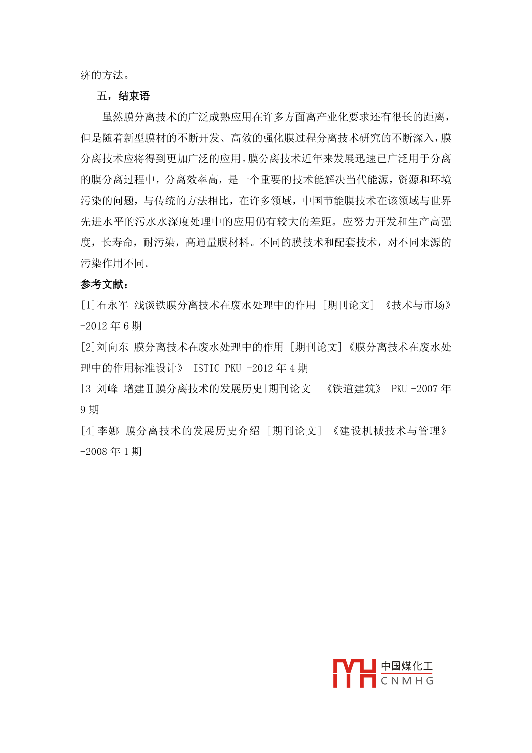 膜分離法污水處理技術(shù)第一作者:袁朋單位:山東綠盾環(huán)保工程有限公司郵編: 250100第二作者:李勇進(jìn)單位: 深圳中海世紀(jì)建筑設(shè)計(jì)有限公司煙臺(tái)分公司郵編: 264001第三作者:周士振[摘要]膜分離 是在20世紀(jì)初出現(xiàn),上世紀(jì)60年代后迅速崛起的一一門分離新技術(shù)。膜分離技術(shù)由于兼有分離、濃縮、純化和精制的功能,又有高效、 節(jié)能、環(huán)保、分子級(jí)過(guò)濾及過(guò)濾過(guò)程簡(jiǎn)單、易于控制等特征,因此,目前已廣泛應(yīng)用于食品、醫(yī)藥、生物、環(huán)保、化工、冶金、能源、石油、水處理、電子、仿生等領(lǐng)域,產(chǎn)生了巨大的經(jīng)濟(jì)效益和社會(huì)效益,已成為當(dāng)今分離科學(xué)中最重要的手段之一。[關(guān)鍵詞]膜分離法,污水處理,技術(shù)的發(fā)展中圖分類號(hào): U664. 9+2文獻(xiàn)標(biāo)識(shí)碼: A文章編號(hào):一,前言膜分離技術(shù)是非常接近我們的日常生活的。比如水,果汁,牛奶,保健品,中國(guó)傳統(tǒng)醫(yī)藥,茶葉,食品,飲料,調(diào)味品,都會(huì)使用膜分離技術(shù)。隨著國(guó)民經(jīng)濟(jì)的快速發(fā)展,膜分離技術(shù)的應(yīng)用領(lǐng)域?qū)⒉粌H是越來(lái)越廣泛,而且被越來(lái)越多的人認(rèn)識(shí)和接受。據(jù)初步統(tǒng)計(jì),2001 年全球銷售膜和膜組接近80十億美元。二.發(fā)膜分離技術(shù)的發(fā)展歷史1.模擬合而成的歷史,是一個(gè)漫長(zhǎng)而曲折的過(guò)程。膜科學(xué)與技術(shù)在中國(guó)的發(fā)展,是從1958年開(kāi)始研究離子交換膜開(kāi)始。20 世紀(jì)60年代為創(chuàng)業(yè)階段。創(chuàng)辦于1965年的反滲透勘探的國(guó)家海水淡化戰(zhàn)斗的開(kāi)始于1967年,在20世紀(jì)70年代,進(jìn)入開(kāi)發(fā)階段。這一一時(shí)期,微濾,電滲析,反滲透膜和超濾膜和組設(shè)備得到研究和發(fā)展,20世紀(jì)80年代到應(yīng)用階段.2.半個(gè)世紀(jì)以來(lái),隨著膜科學(xué)與技術(shù)在中國(guó)的發(fā)展,膜分離完成了從實(shí)驗(yàn)室到大規(guī)模工業(yè)應(yīng)用的過(guò)渡.自1925 年以來(lái),幾乎每10年有一個(gè)新的膜法處理工藝的工業(yè)應(yīng)用產(chǎn)生。3。膜分離技術(shù)具有優(yōu)越的性能,膜分離過(guò)程一I中國(guó)煤化工于能YHCNM HG源危機(jī),資源短缺。在21世紀(jì)的工業(yè)轉(zhuǎn)型的產(chǎn)業(yè)和技術(shù)領(lǐng)域中膜法處理工藝是極為重要的。曾有專家指出:誰(shuí)掌握了膜技術(shù),誰(shuí)就掌握了化學(xué)工業(yè)的明天。4.我們的膜分離技術(shù)現(xiàn)在進(jìn)入應(yīng)用階段,在此期間,膜技術(shù)在食品加工,海水淡化,純水,超純水,醫(yī)藥,生物科技,環(huán)保等領(lǐng)域的開(kāi)始大規(guī)模發(fā)展和應(yīng)用。.而且,在此期間,國(guó)家重點(diǎn)科技攻關(guān)項(xiàng)目和國(guó)家自然科學(xué)基金也有膜分離技術(shù)主題。目前,潛力巨大的新興產(chǎn)業(yè)正在蓬勃發(fā)展的激情挑戰(zhàn)市場(chǎng),為眾多企業(yè)帶來(lái)了顯著的經(jīng)濟(jì),社會(huì)和環(huán)境效益。雖然膜分離技術(shù)的巨大進(jìn)步,但它仍處于發(fā)展的上升階段,有大量的工作需要做。膜科學(xué)技術(shù)21世紀(jì)將進(jìn)一步提高, 需要在改善現(xiàn)有的膜過(guò)程中,不斷探索和開(kāi)發(fā)新的工藝和材料,并擴(kuò)大膜技術(shù)的應(yīng)用領(lǐng)三,膜分離過(guò)程中的基本特征。膜分離技術(shù),其節(jié)能效果顯著,設(shè)備簡(jiǎn)單,操作方便,易于控制,受到了廣大用戶的普遍歡迎。膜分離方法的基本特征是傳質(zhì)機(jī)制一般被認(rèn)為是在溶劑通過(guò)膜材料擴(kuò)散之間的壓力驅(qū)動(dòng)力的水溶劑中的滯留物,鹽作為溶質(zhì),和類型的膜是-種非對(duì)稱膜或復(fù)合膜反滲透又稱浸潤(rùn)逆透鏡(RO),該溶液中的溶劑是足夠的壓力(通常為水)通過(guò)反滲透膜(半透膜)分離,違反自然滲透的方向,因此稱為反滲透。根據(jù)各種不同的材料通過(guò)壓力逆的,它是以大于滲透壓的反滲透的方法來(lái)實(shí)現(xiàn)分離,提取,純化和濃縮的目的。在反滲透裝置前,提供原水的分析報(bào)告,公司的設(shè)計(jì)師,為用戶確定的治療方案,根據(jù)水質(zhì)。合理的選擇,反滲透設(shè)備,并確保反滲透長(zhǎng)期,穩(wěn)定的正常運(yùn)行。四.膜分離技術(shù)在廢水處理中的作用1.在20世紀(jì)60年代開(kāi)始的市政污水處理和回用。大型集中的城市污水的水質(zhì)更穩(wěn)定,是一種潛在的水資源。城市污水處理通常是發(fā)射兩個(gè)或三個(gè)液體污水到處理廠,再去除痕量有機(jī)物和重金屬離子,使水質(zhì)達(dá)到飲用水標(biāo)準(zhǔn)。但由于一些主觀原因,是這些污水經(jīng)常注入到地下含水層或淡水水庫(kù),造成污染,但是經(jīng)處理后可用于工業(yè)循環(huán)冷卻水,鍋爐用水和其他非飲用水。2.由于工業(yè)的發(fā)展,大量的工業(yè)廢水排入水體,這些工業(yè)廢水,量大面廣,危害深,大多含有不同濃度的化學(xué)物質(zhì),其中有些具有很高的經(jīng)濟(jì)價(jià)值,而另一些是有毒的。為了保護(hù)環(huán)境不受污染,回收有用物質(zhì),中國(guó)煤化工廢水MHCNM HG的凈化處理,膜分離技術(shù)能有