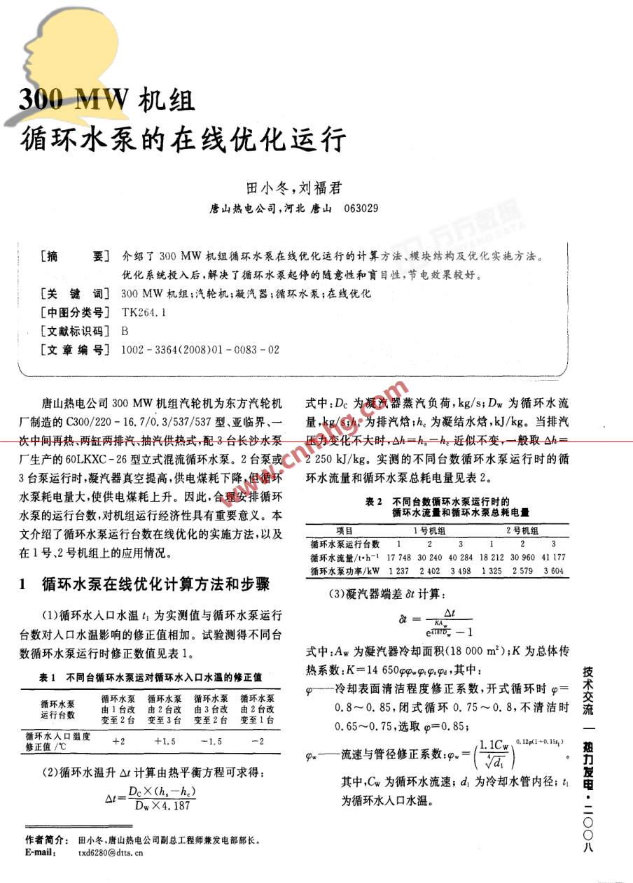 300 MW 機(jī)組循環(huán)水泵的在線優(yōu)化運(yùn)行