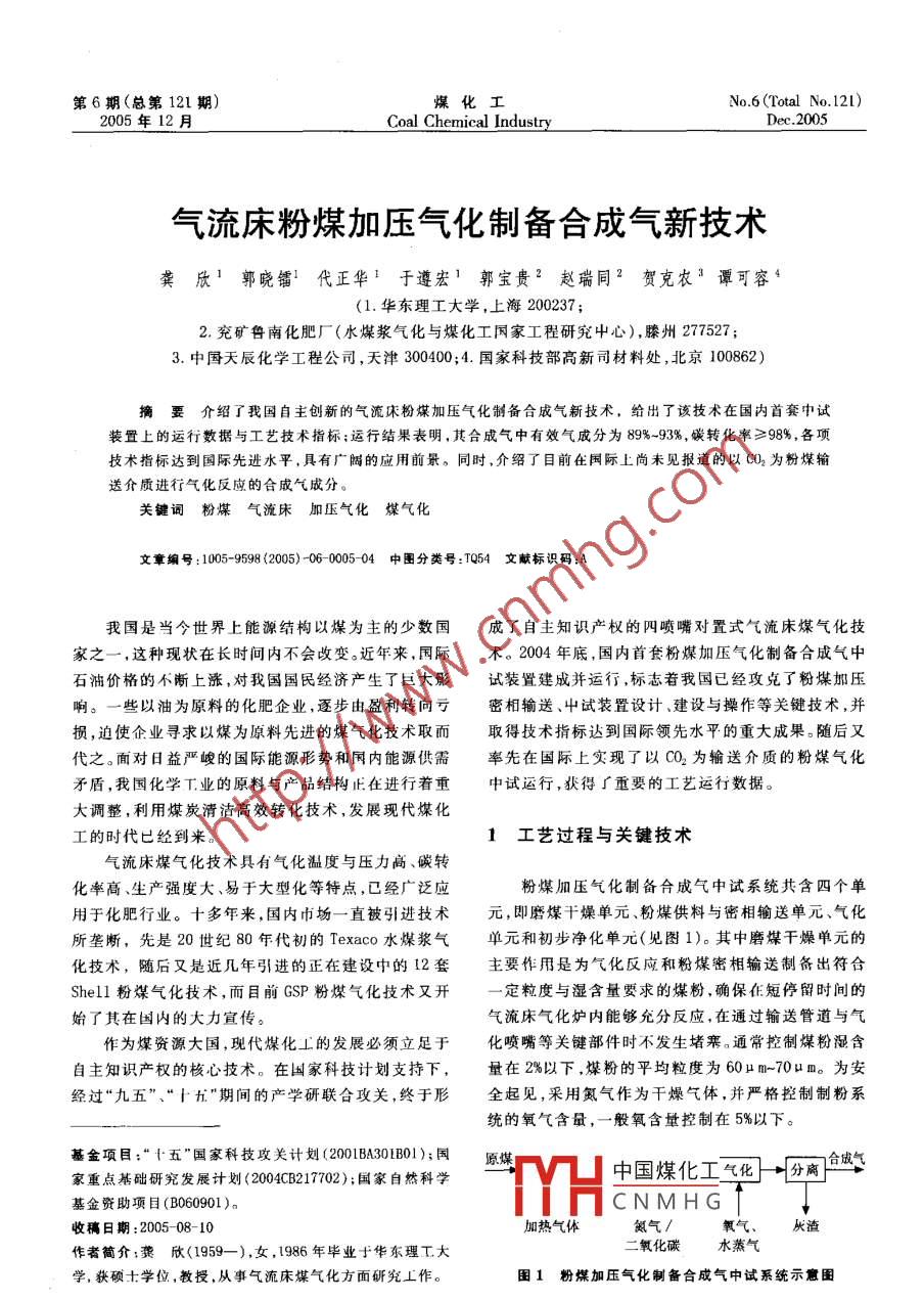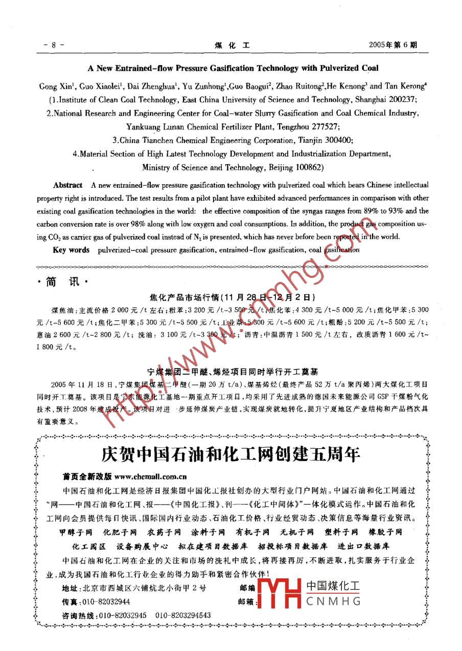 - 作者單位:華東理工大學,兗礦魯南化肥廠(水煤漿氣化與煤化工國家工程研究中心),中國天辰化學工程公司,國家科技部高新司材料處