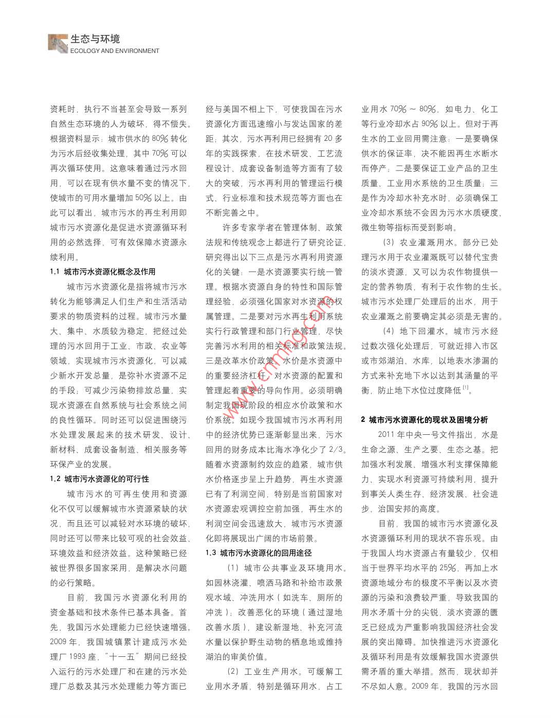 城市污水資源化與水資源循環(huán)利用研究