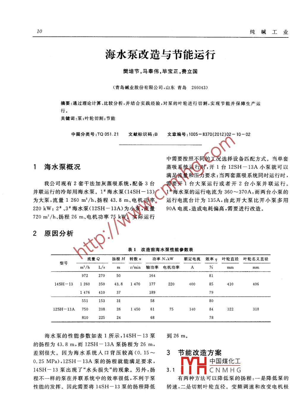 海水泵改造與節(jié)能運(yùn)行