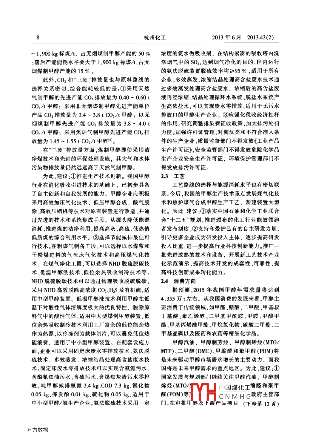 我國甲醇工業(yè)的發(fā)展與趨勢