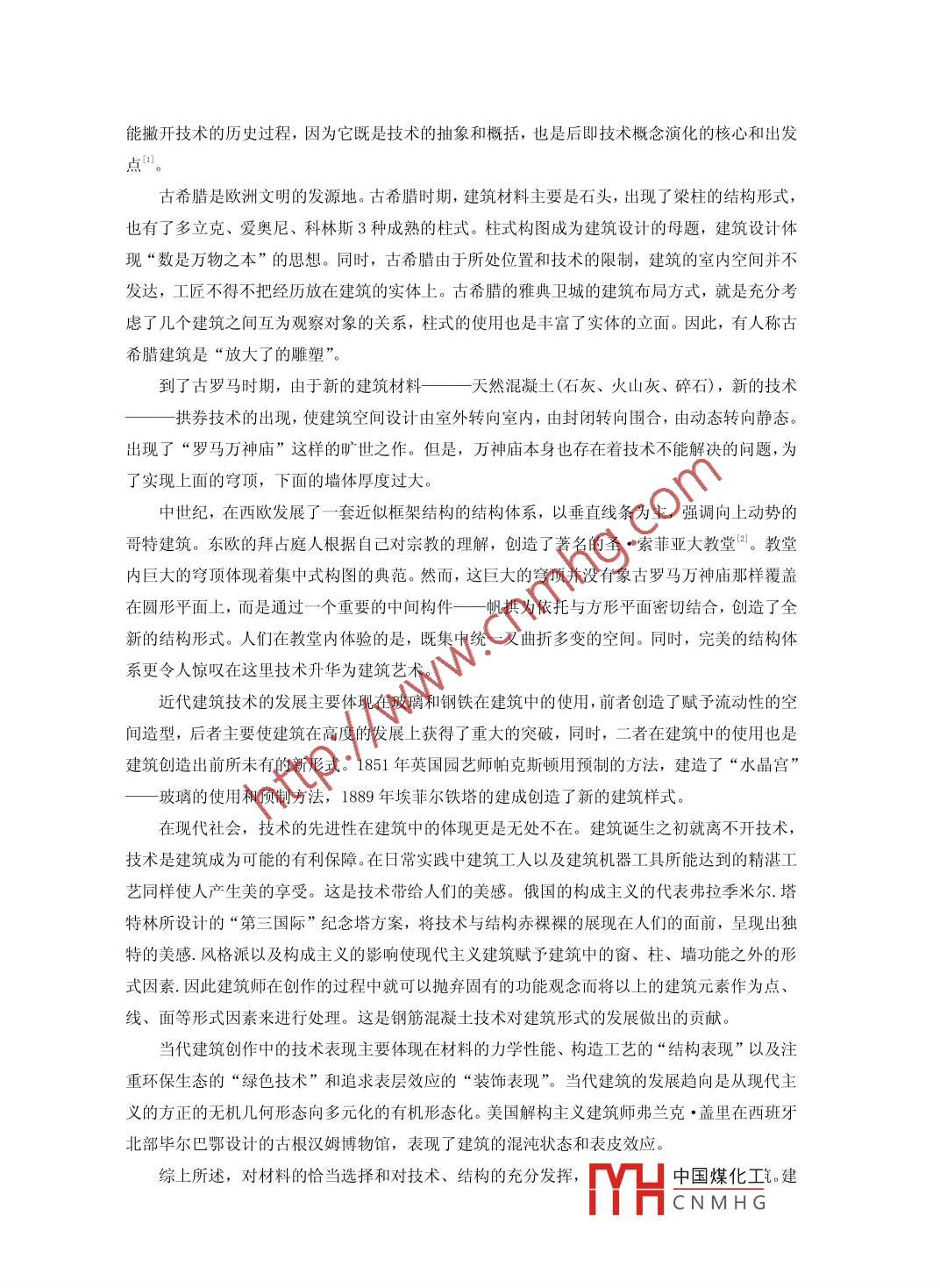 技術(shù)對建筑的影響宮秀艷宗華中國石油天然氣股份有限公司遼寧阜新銷售公司遼寧阜新123000北京華泰焦化工程技術(shù)有限公司鞍山分公司遼寧鞍山114001摘要:從人類伊始,建筑的發(fā)展經(jīng)歷了極其漫長的過程,而每次建筑空間的突破和建筑形式的飛躍都是當時條件下技術(shù)發(fā)展的結(jié)果。同時,建筑技術(shù)的進步,可以使房屋越建越高;跨度越來越大;使用性能越來越好;發(fā)揮人類房屋建筑中的藝術(shù)性。如何看待技術(shù)在建筑發(fā)展過程中的作用對于了解建筑的發(fā)展歷程有著至關(guān)重要的作用。作為建筑歷史和當代建筑思潮研究的我們,了解技術(shù)在建筑變革中的重要作用和如何更有效地利用這些技術(shù),是我們在學習和研究過程中正確理解和掌握建筑知識必不可少的途徑。關(guān)鍵詞:技術(shù);建筑;技術(shù)觀.Abstract:At the beginning of the development of architecture from the human,has an extreme lylong process, and each time the archi tectural space and archi tectural form a breakthrough leap allat the time of development of technology under the conditions of the results. At the same time,the progress of archi tectural technology, can make the houses built more high; span increasing;the use of the performance is getting better and better; play the art of human in housing construction.How to look at the role of technology in the construction of the development process is crucialfor understanding the development process of building. As the study of archi tectural history andcontemporary archi tectural thoughts we understand technology, an important role in the constructionof the change and how to make more effective use of these technologies, is our correct understandingin learning and research process and master the way of bui lding knowl edge essential.Key words: technology; construction; technology view中圖分類號: F407. 9文獻標識碼: A文章編號: 2095- 2104 (2013)一、問題的提出幾千年建筑的發(fā)展史也自始至終體現(xiàn)著技術(shù)與建筑、技術(shù)與建筑藝術(shù)的不尋常關(guān)系。然而并不是每座建筑物都是-一個偉大的藝術(shù)品,建筑只有在工程技術(shù)與工業(yè)藝術(shù)相融洽之.上,才能成為藝術(shù)。隨著人們物質(zhì)和精神文明建設(shè)的提高,對建筑藝術(shù)與建筑性能的要求也越來越挑剔,這就要求在科學技術(shù)日新月異、新材料、新技術(shù)的大量開發(fā)的今天使建筑技術(shù)與建筑藝術(shù)更好地融合在- -起,成- -曠世的藝術(shù)品。建筑技術(shù)與建筑藝術(shù)的觀點既對立又統(tǒng)- -:- 方面,進步的建筑技術(shù)可以使藝術(shù)風格的發(fā)生變化且可現(xiàn)。另-方面,有限的技術(shù)又制約著藝術(shù)形式的自由發(fā)揮,而藝術(shù)風格的發(fā)展又可以促進建筑技術(shù)革新??傊鼈兪腔拥?,是相互制約的。二、技術(shù)對建筑影響的歷史分析技術(shù)的歷史源遠流長。人類打制的第- -把石器, 就蘊含了技中國煤化工,不MYHCNM HG能撇開技術(shù)的歷史過程,因為它既是技術(shù)的抽象和概括,也是后即技術(shù)概念演化的核心和出發(fā)古希臘是歐洲文明的發(fā)源地。古希臘時期,建筑材料主要是石頭,出現(xiàn)了梁柱的結(jié)構(gòu)形式,也有了多立克、愛奧尼、科林斯3種成熟的柱式。柱式構(gòu)圖成為建筑設(shè)計的母題,建筑設(shè)計體現(xiàn)“數(shù)是萬物之本”的思想。同時,古希臘由于所處位置和技術(shù)的限制,建筑的室內(nèi)空間并不發(fā)達,工匠不得不把經(jīng)歷放在建筑的實體上。古希臘的雅典衛(wèi)城的建筑布局方式,就是充分考慮了幾個建筑之間互為觀察對象的關(guān)系,柱式的使用也是豐富了實體的立面。因此,有人稱古希臘建筑是“放大了的雕塑”。到了古羅馬時期,由于新的建筑材料一天然混凝 土(石灰、火山灰、碎石),新的技術(shù)-拱券技術(shù)的出現(xiàn),使建筑空間設(shè)計由室外轉(zhuǎn)向室內(nèi),由封閉轉(zhuǎn)向圍合,由動態(tài)轉(zhuǎn)向靜態(tài)。出現(xiàn)了“羅馬萬神廟”這樣的曠世之作。但是,萬神廟本身也存在著技術(shù)不能解決的問題,為了實現(xiàn)上面的穹頂,下面的墻體厚度過大。中世紀,在西歐發(fā)展了- -套近似框架結(jié)構(gòu)的結(jié)構(gòu)體系,以垂直線條為主,強調(diào)向上動勢的哥特建筑。東歐的拜占庭人根據(jù)自己對宗教的理解,創(chuàng)造了著名的圣●索菲亞大教堂回。教堂內(nèi)巨大的穹頂體現(xiàn)著集中式構(gòu)圖的典范。然而,這巨大的穹頂并沒有象古羅馬萬神廟那樣覆蓋在圓形平面上,而是通過一一個重要的中間構(gòu)件一帆拱為依托與方形平面密切結(jié)合,創(chuàng)造了全新的結(jié)構(gòu)形式。人們在教堂內(nèi)體驗的是,既集中統(tǒng)一又曲折多變的空間。同時,完美的結(jié)構(gòu)體系更令人驚嘆在這里技術(shù)升華為建筑藝術(shù)。近代建筑技術(shù)的發(fā)展主要體現(xiàn)在玻璃和鋼鐵在建筑中的使用,前者創(chuàng)造了賦予流動性的空間造型,后者主要使建筑在高度的發(fā)展上獲得了重大的突破,同時,二者在建筑中的使用也是.建筑創(chuàng)造出前所未有的新形式。1851年英國園藝師帕克斯頓用預(yù)制的方法,建造了“水晶宮”-玻璃的使用和預(yù)制方法,1889年埃菲爾鐵塔的建成創(chuàng)造了新的建筑樣式。在現(xiàn)代社會,技術(shù)的先進性在建筑中的體現(xi