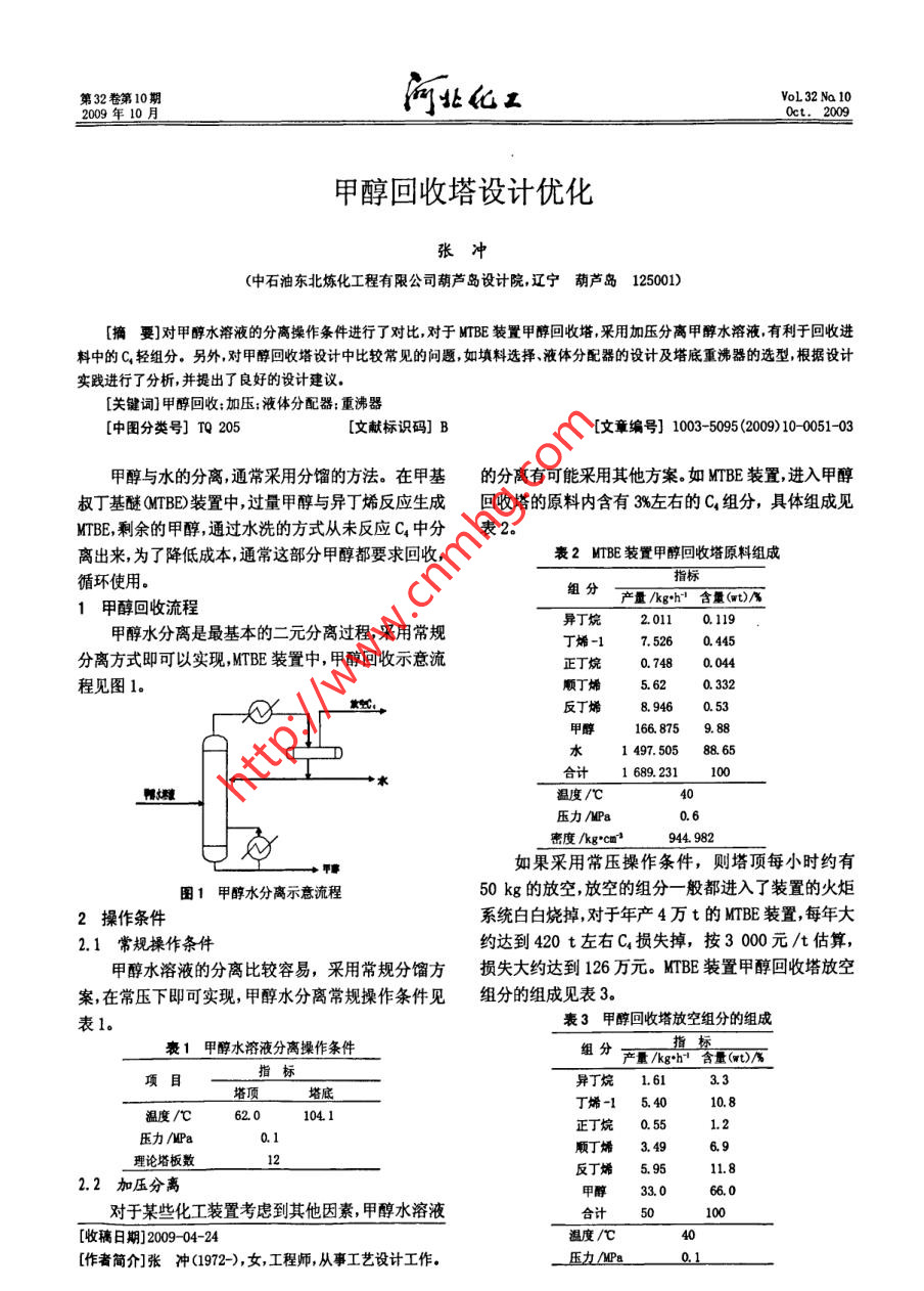 甲醇回收塔設(shè)計(jì)優(yōu)化