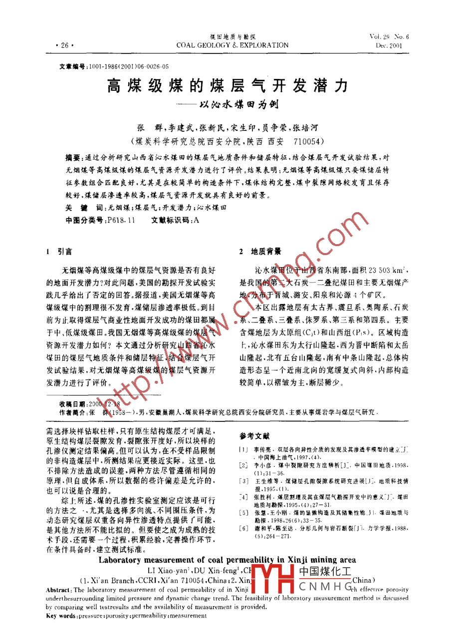 高煤級(jí)煤的煤層氣開(kāi)發(fā)潛力——以沁水煤田為例