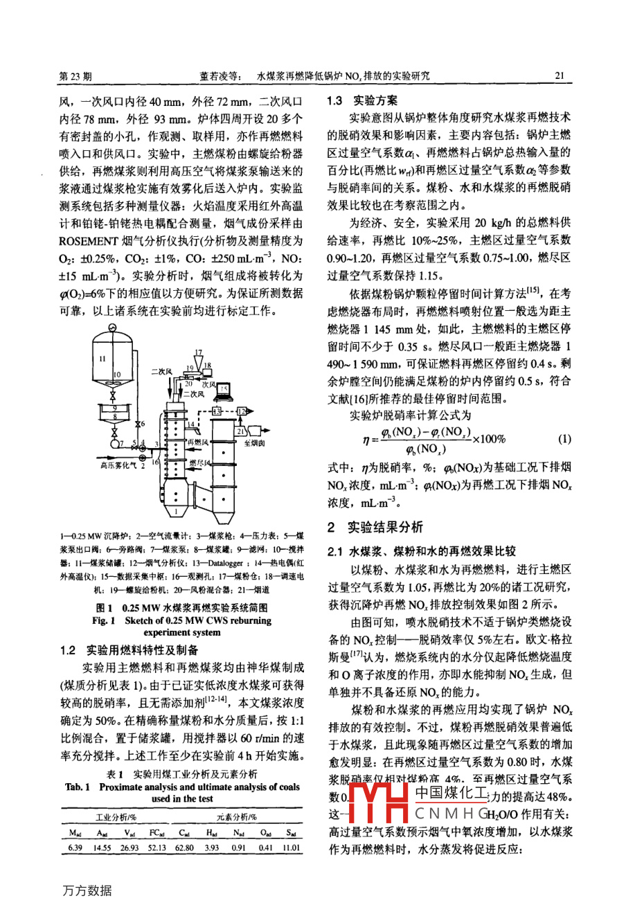 水煤漿再燃降低鍋爐NOx排放的實驗研究