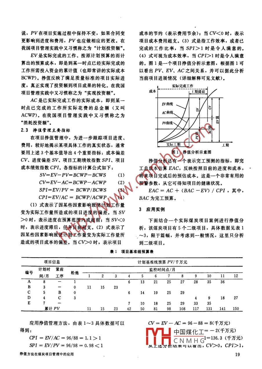 掙值方法在煤炭項(xiàng)目管理中的應(yīng)用