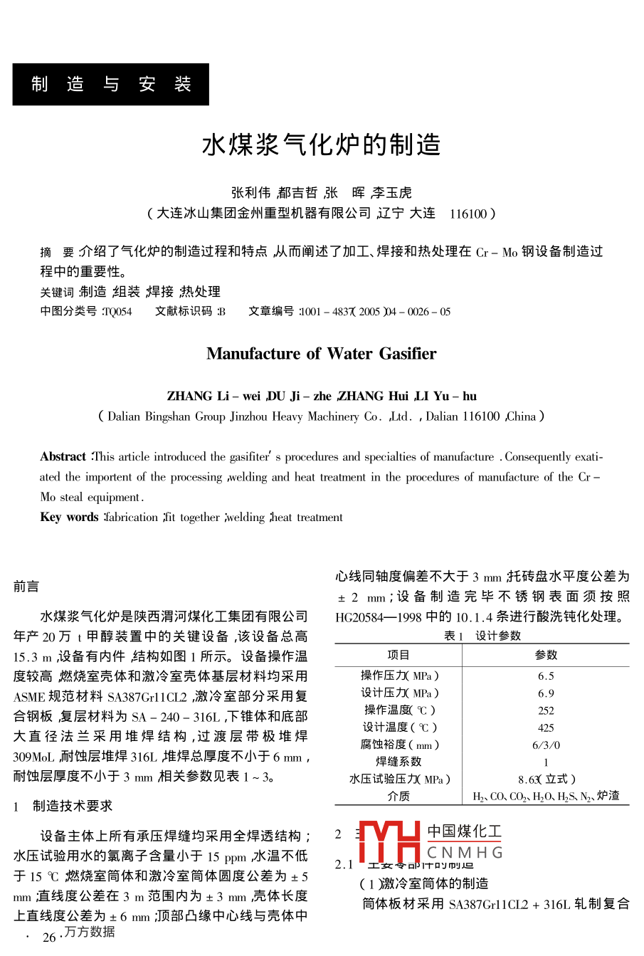 水煤漿氣化爐的制造