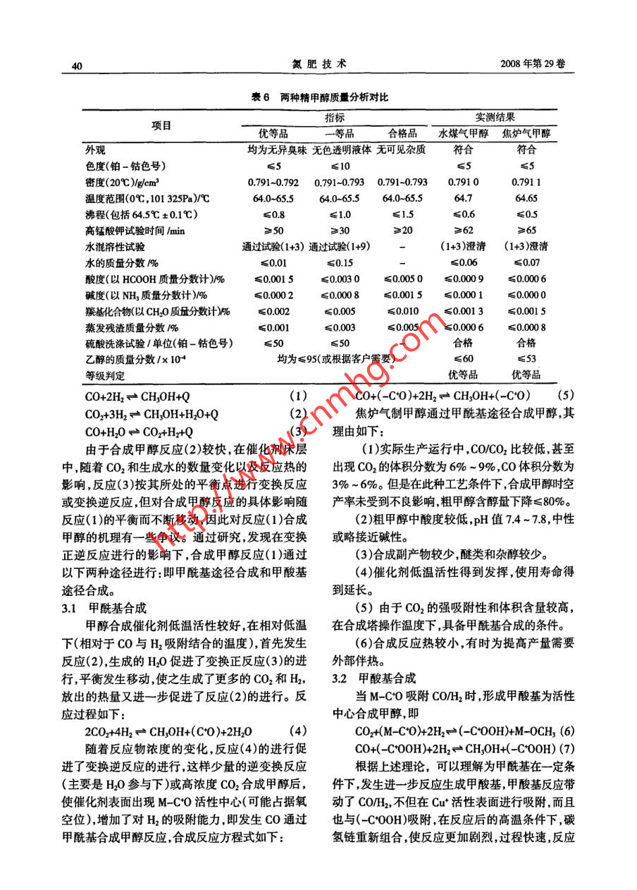 德士古水煤氣制甲醇與焦?fàn)t氣制甲醇的比較