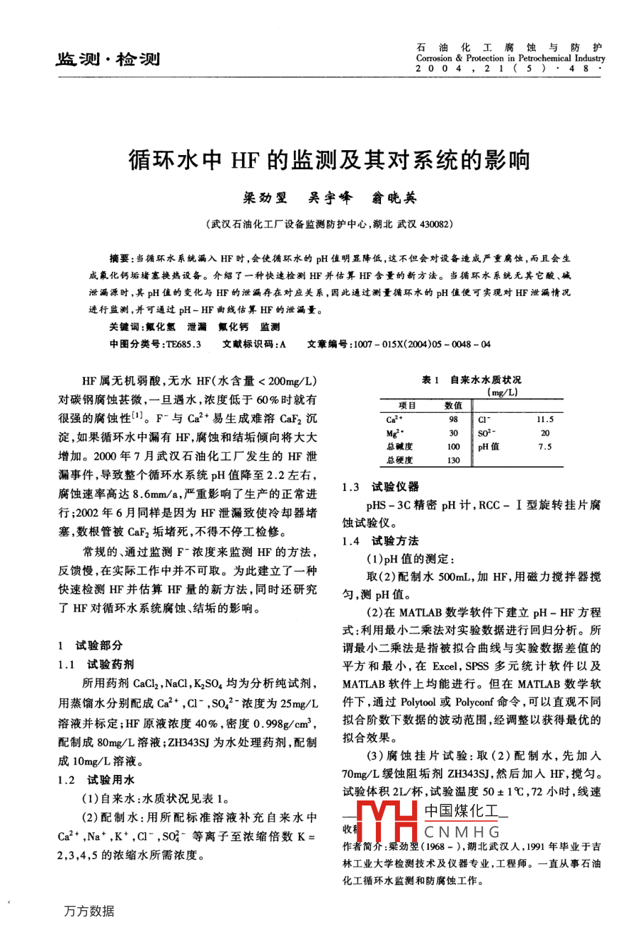 循環(huán)水中HF的監(jiān)測及其對系統(tǒng)的影響
