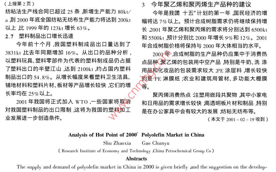 我國(guó)2000年聚烯烴市場(chǎng)熱點(diǎn)分析