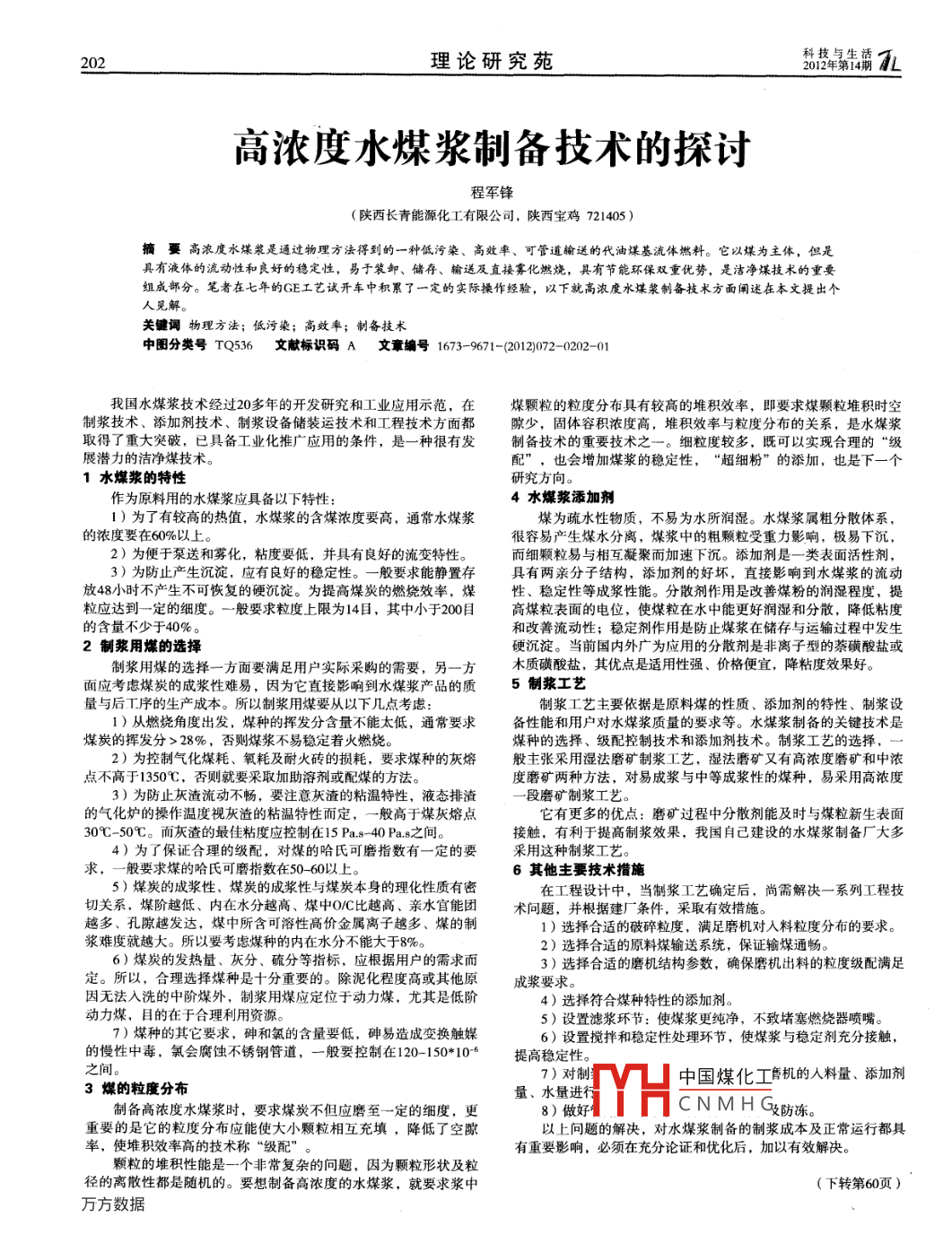 高濃度水煤漿制備技術(shù)的探討