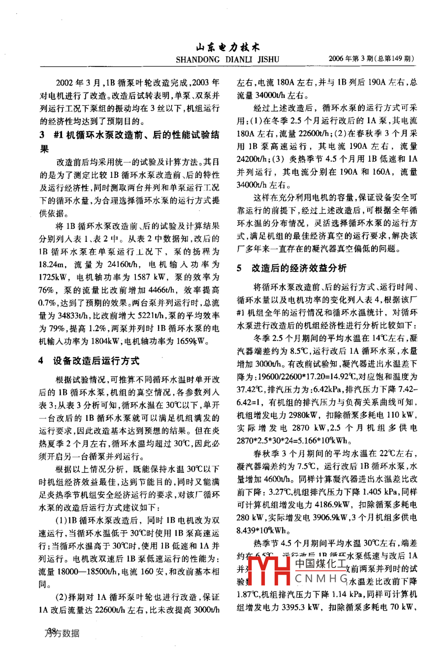 石橫電廠循環(huán)水泵改造及機(jī)組經(jīng)濟(jì)性
