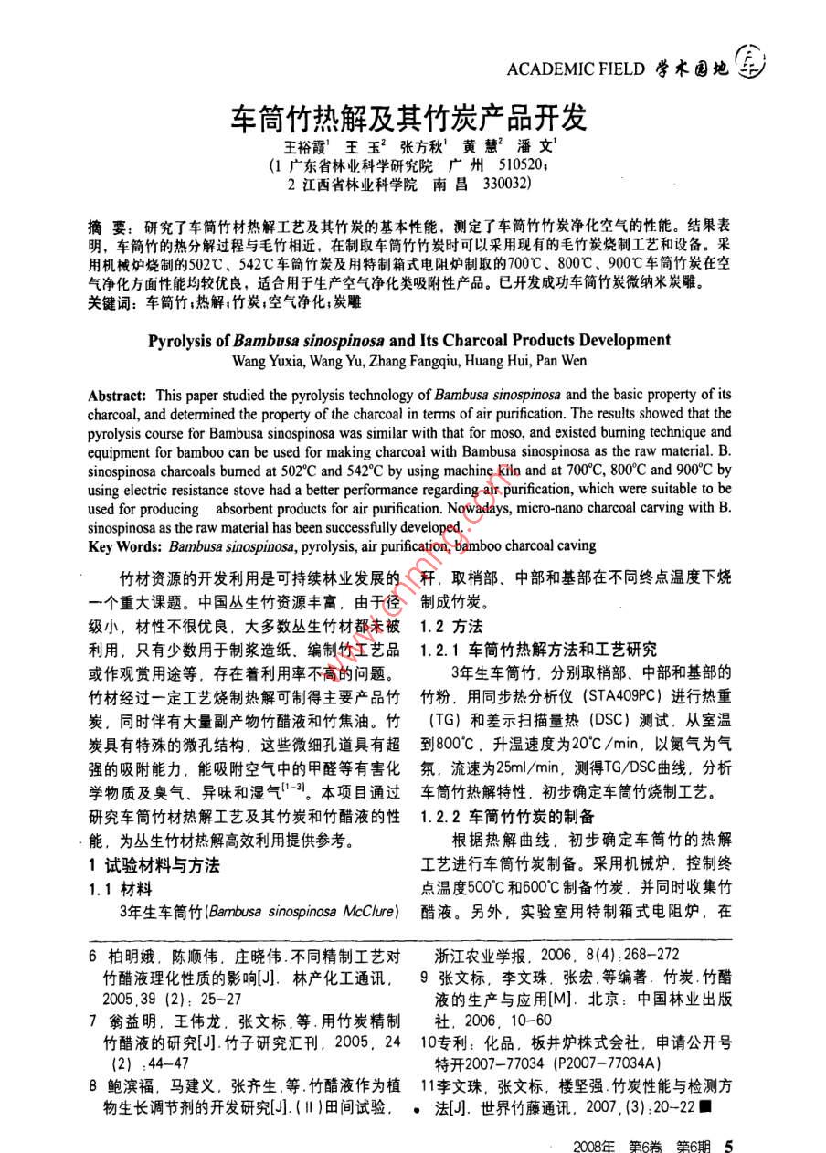 車筒竹熱解及其竹炭產(chǎn)品開發(fā)