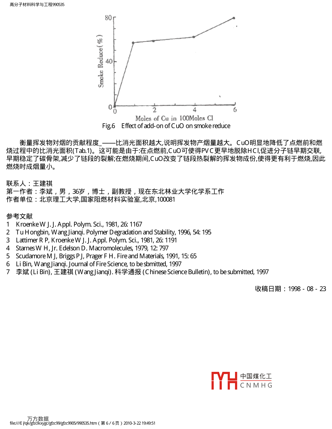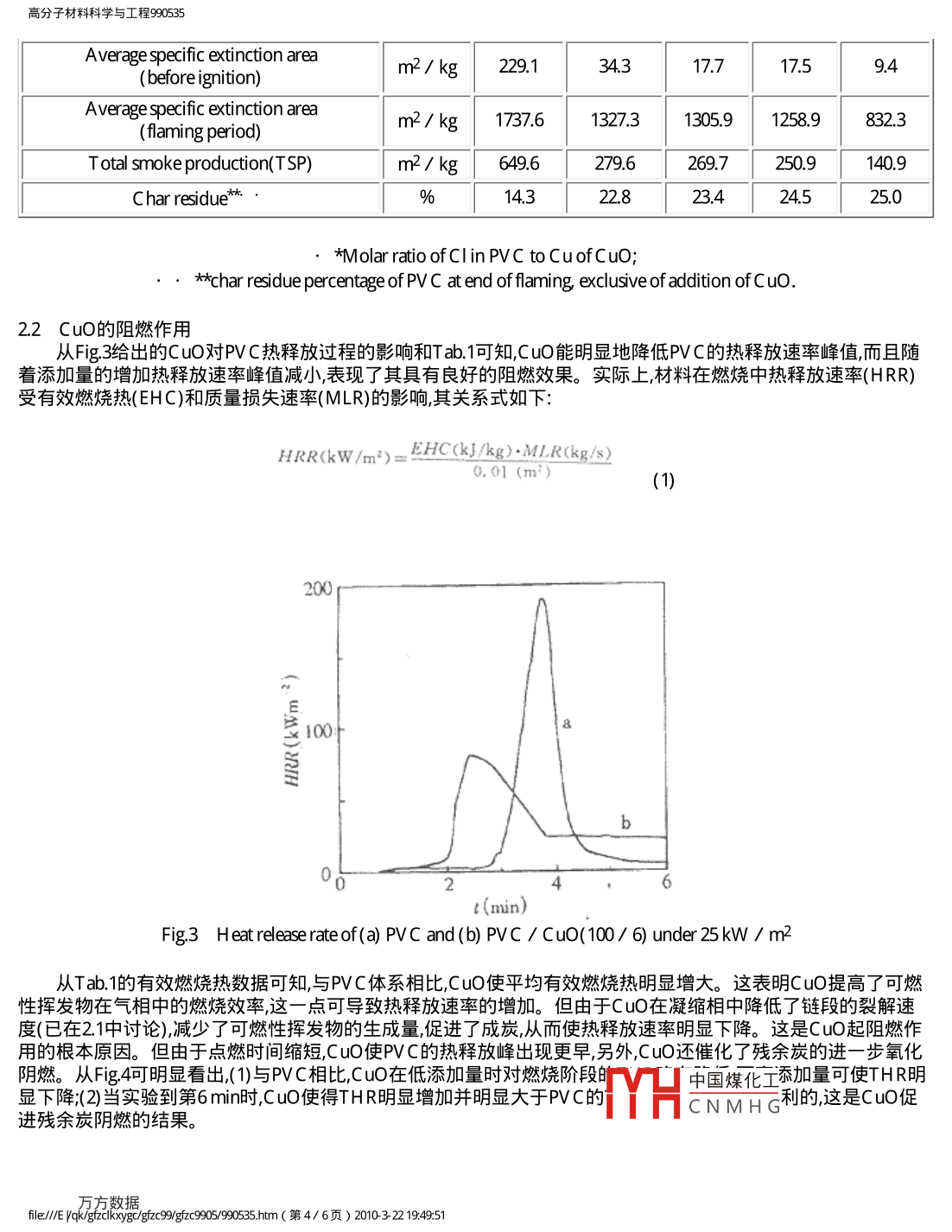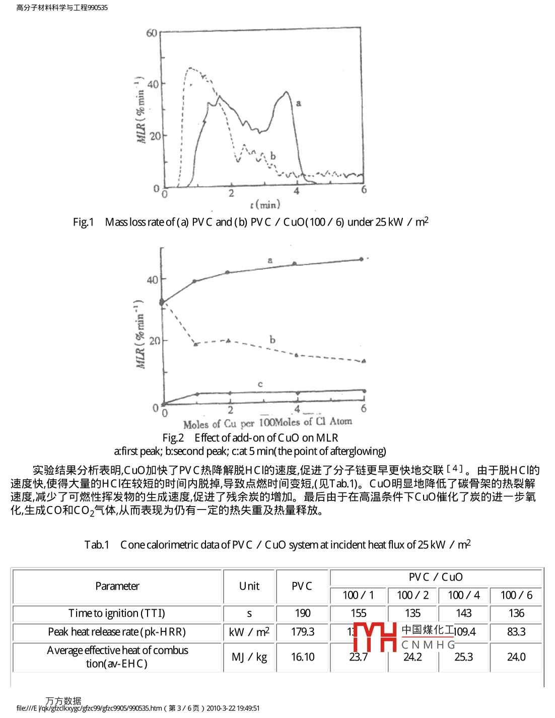 CuO對(duì)硬質(zhì)PVC熱解、阻燃和抑煙的錐形量熱儀(CONE)研究