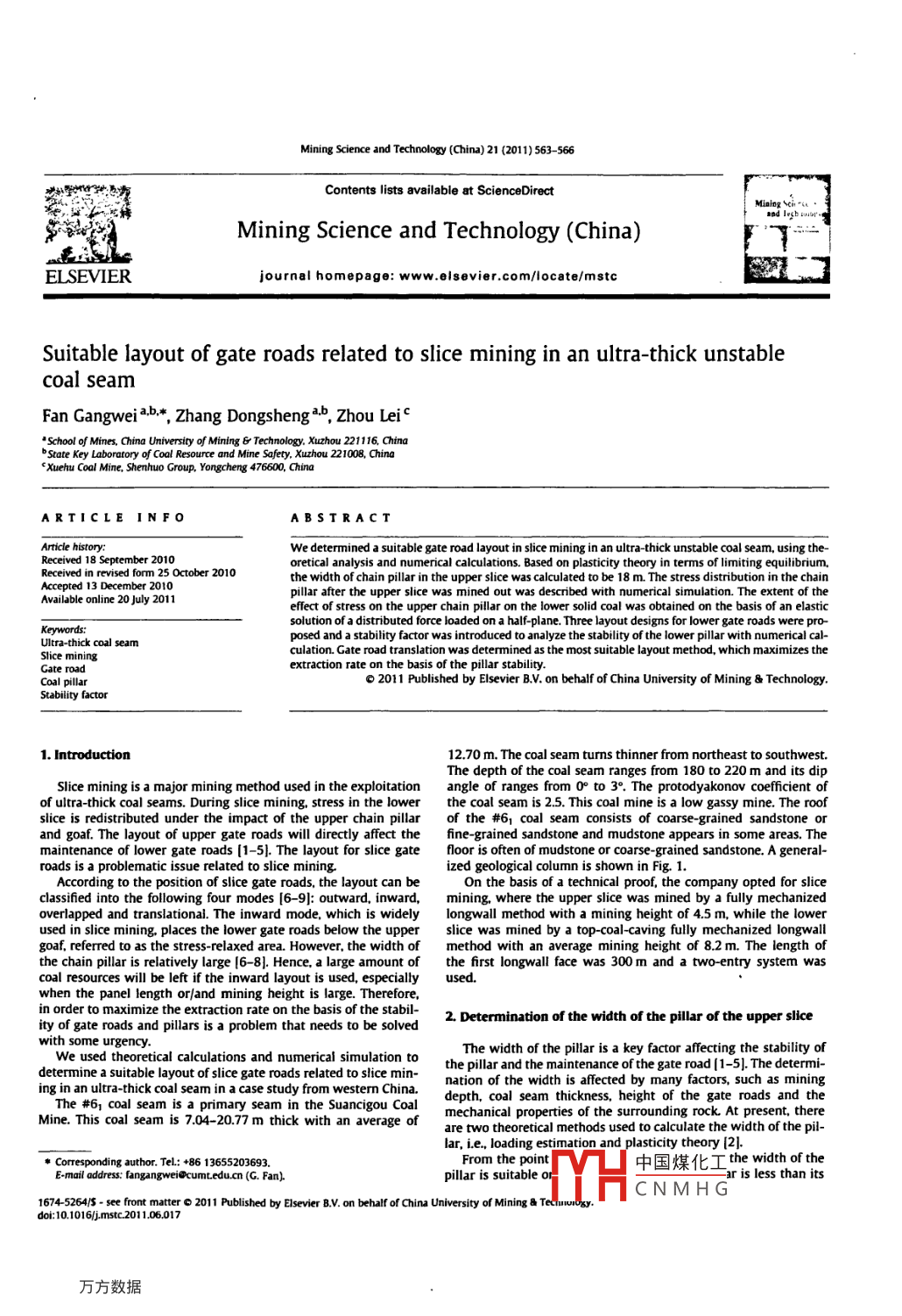 - 期刊名字:礦業(yè)科學(xué)技術(shù)(英文版)