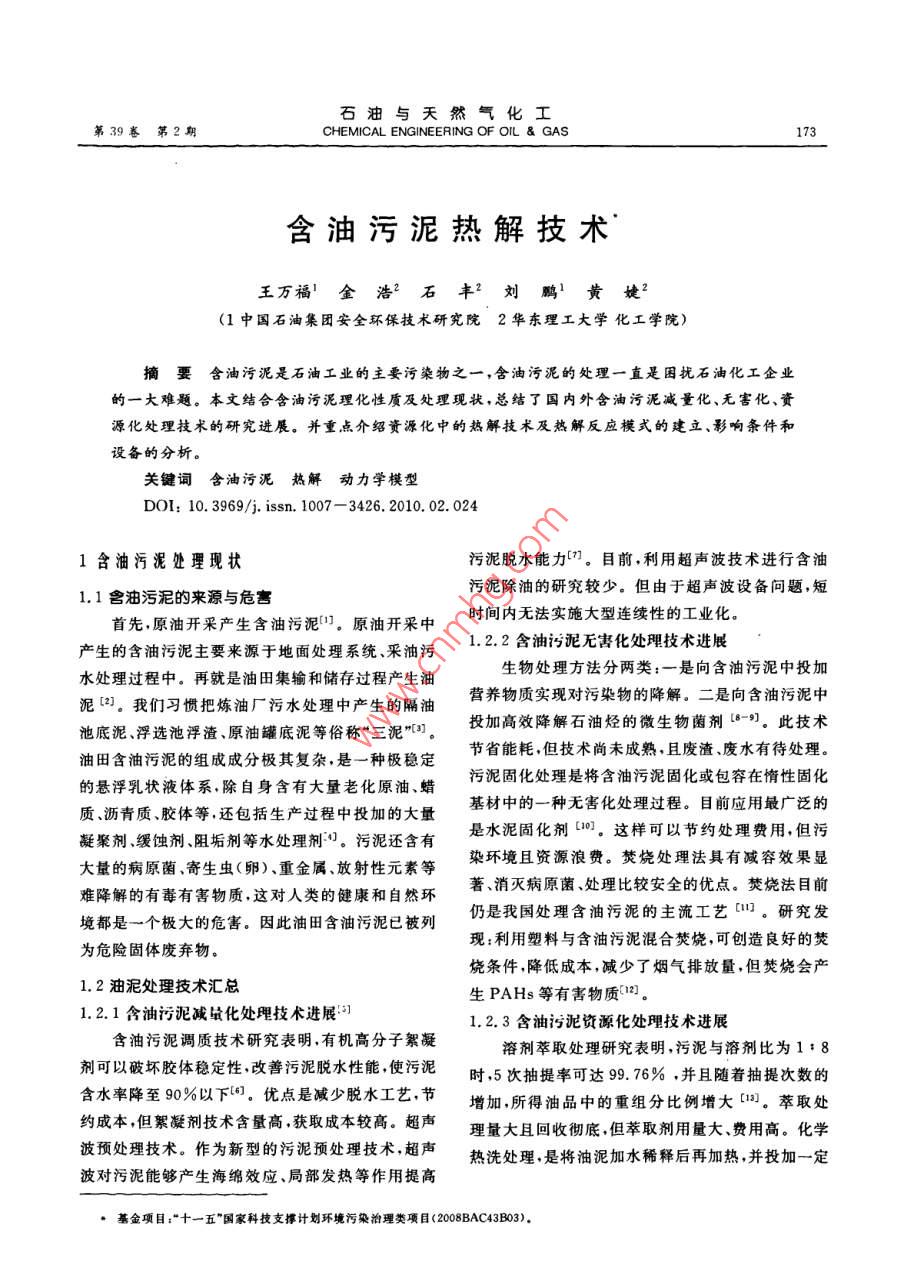 - 期刊名字:石油與天然氣化工