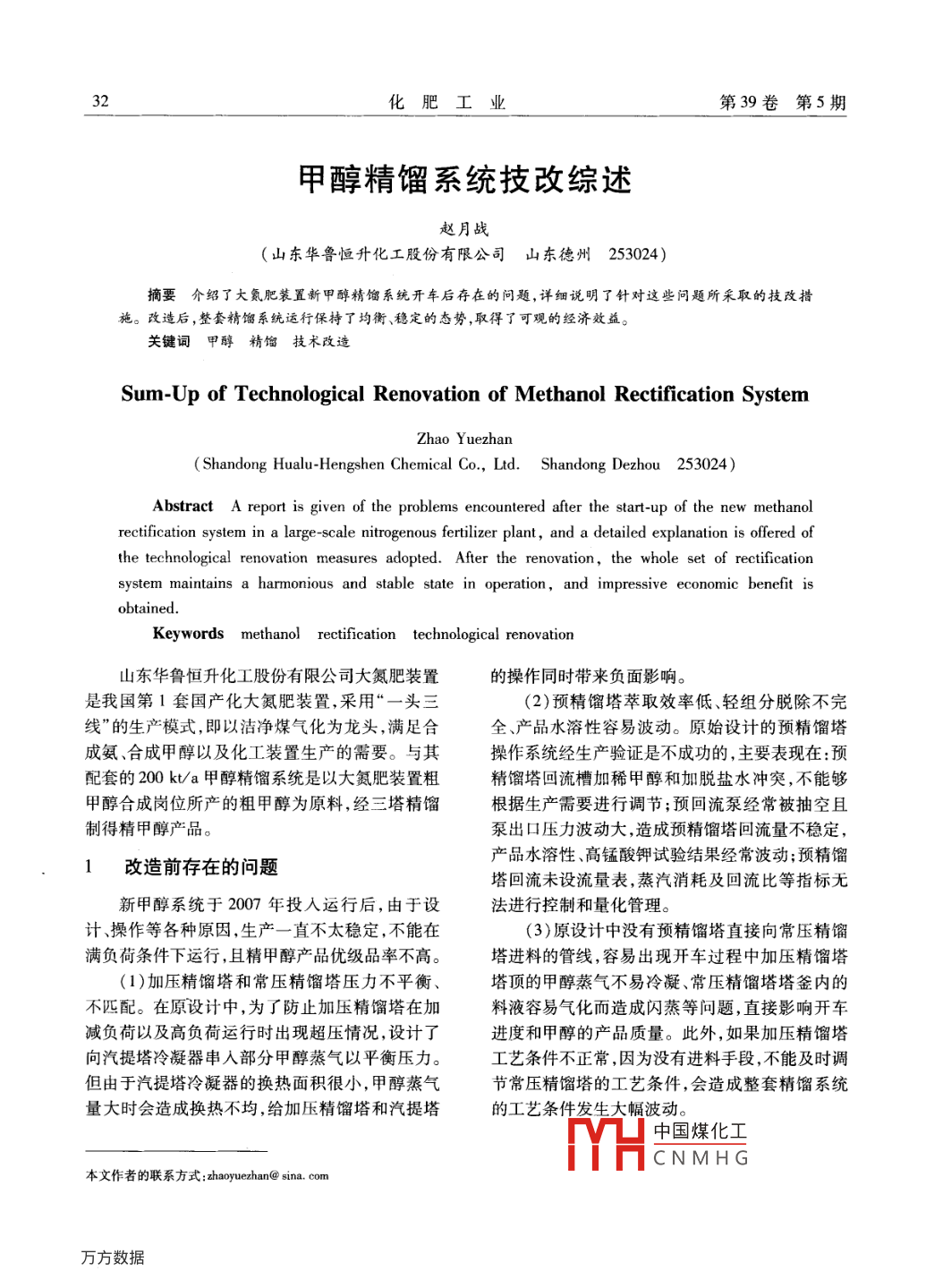 - 期刊名字:化肥工業(yè)