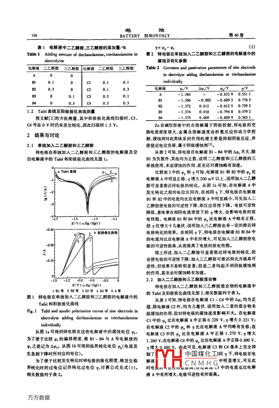 鋅電極在含二乙醇胺、三乙醇胺電解液中的性能 鋅電極在含二乙醇胺、三乙醇胺電解液中的性能