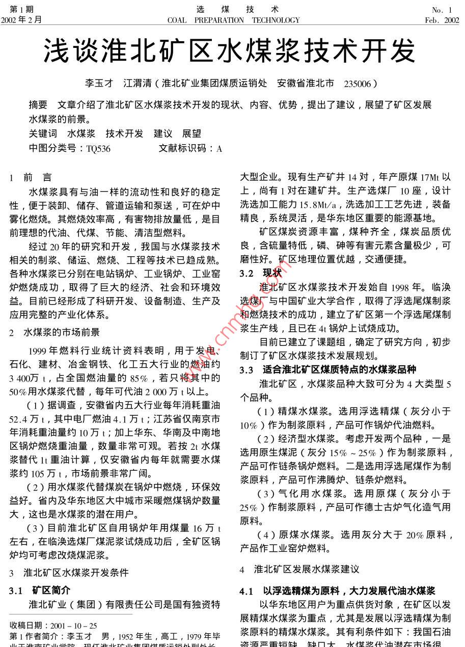 淺談淮北礦區(qū)水煤漿技術(shù)開發(fā)