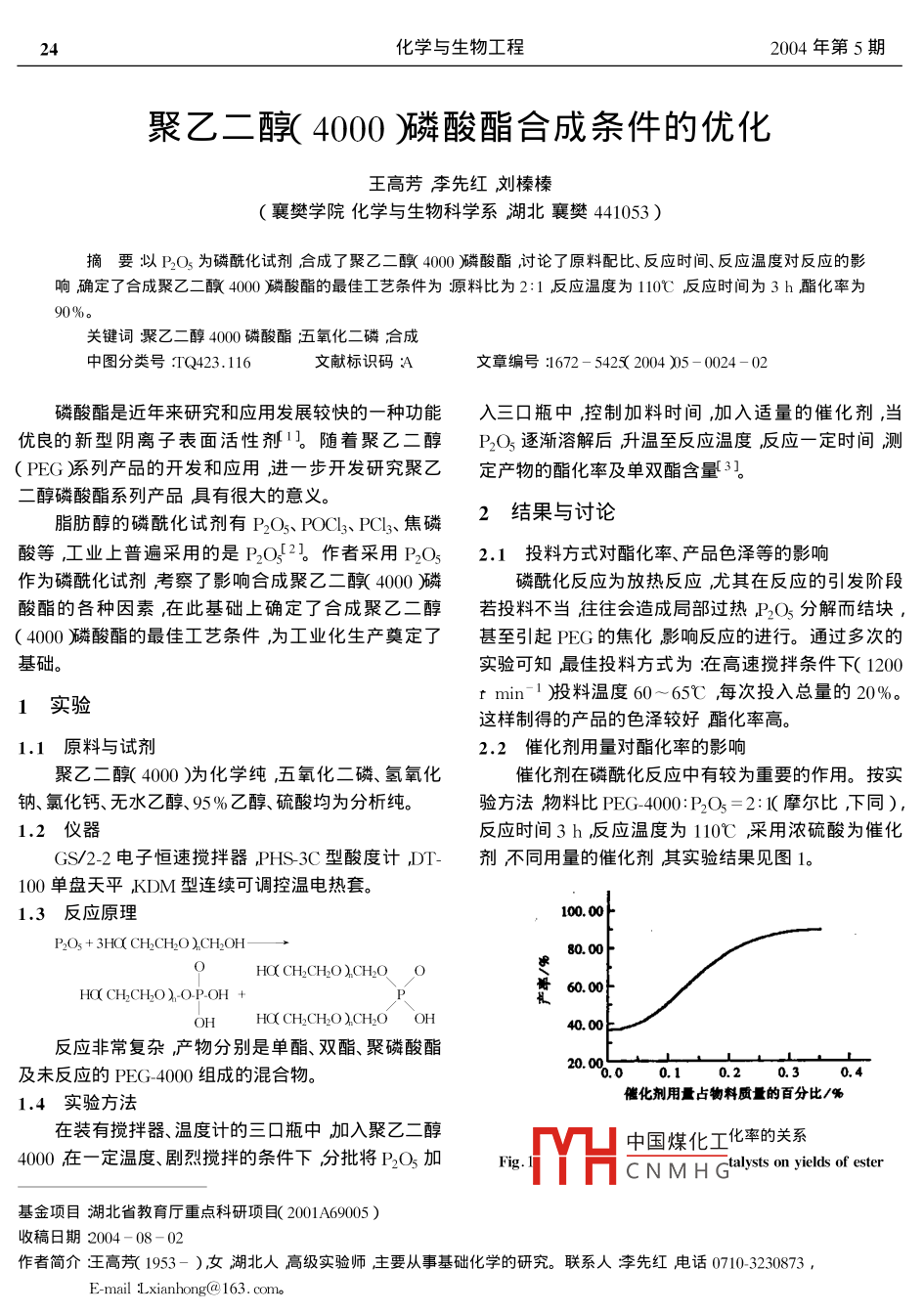 - 期刊名字:化學與生物工程