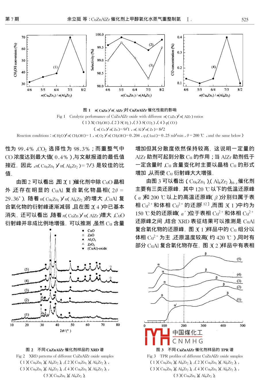 CuZnAlZr催化劑上甲醇氧化水蒸氣重整制氫Ⅰ.催化劑組成的優(yōu)化