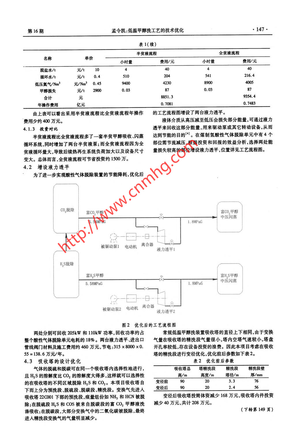 低溫甲醇洗工藝的技術優(yōu)化