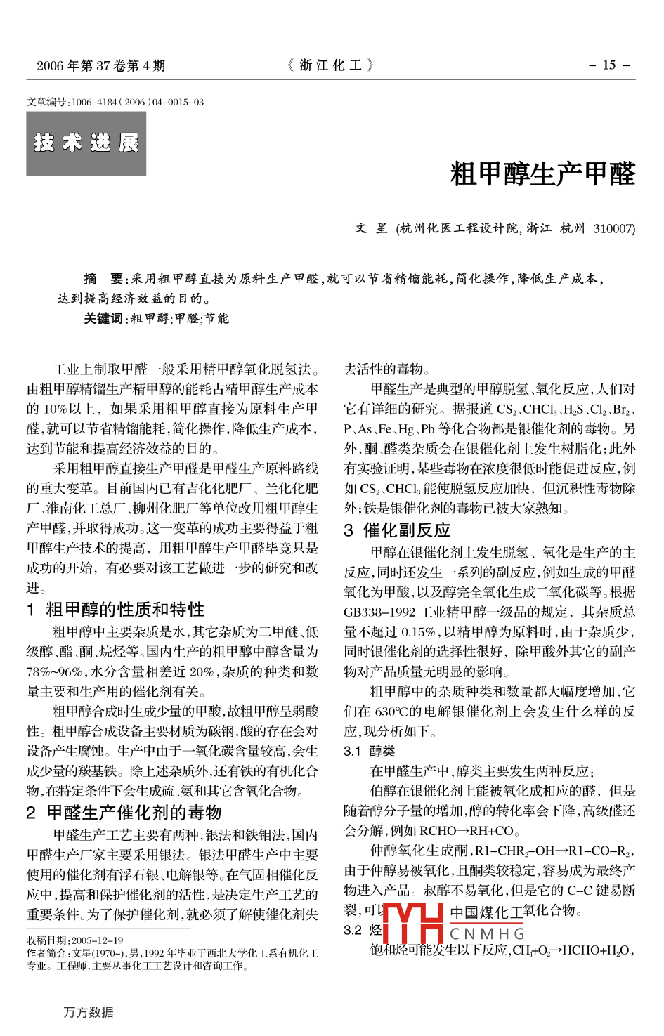 - 期刊名字:浙江化工