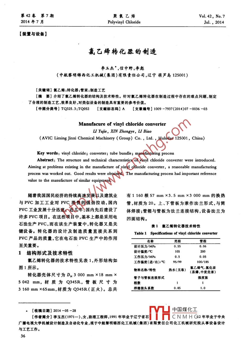 氯乙烯轉(zhuǎn)化器的制造