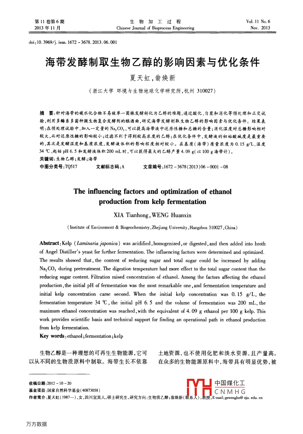 - 期刊名字:生物加工過程