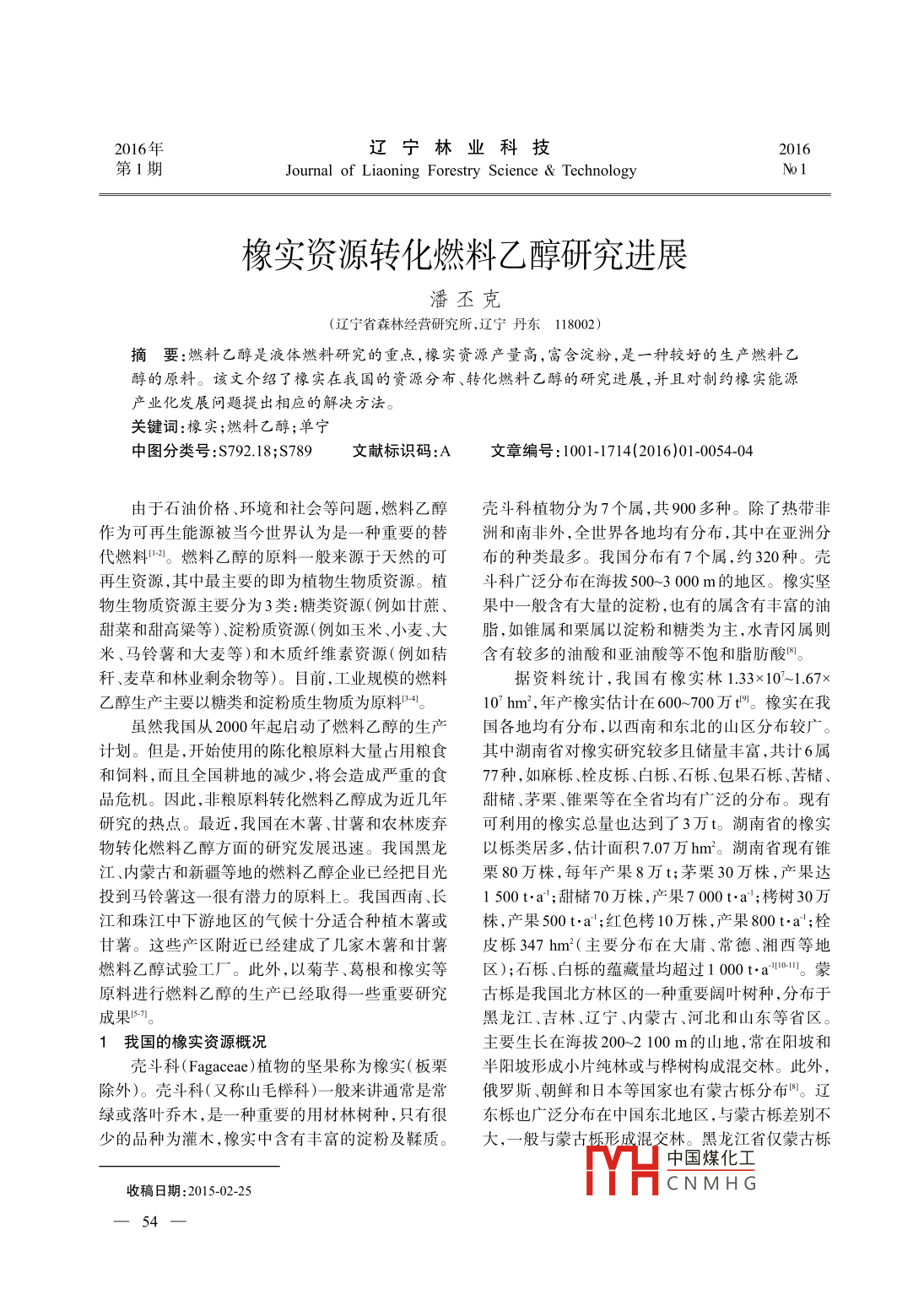 橡實資源轉(zhuǎn)化燃料乙醇研究進(jìn)展