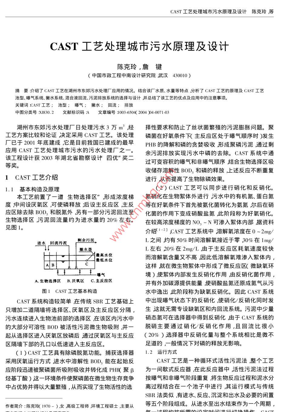 CAST工藝處理城市污水原理及設計