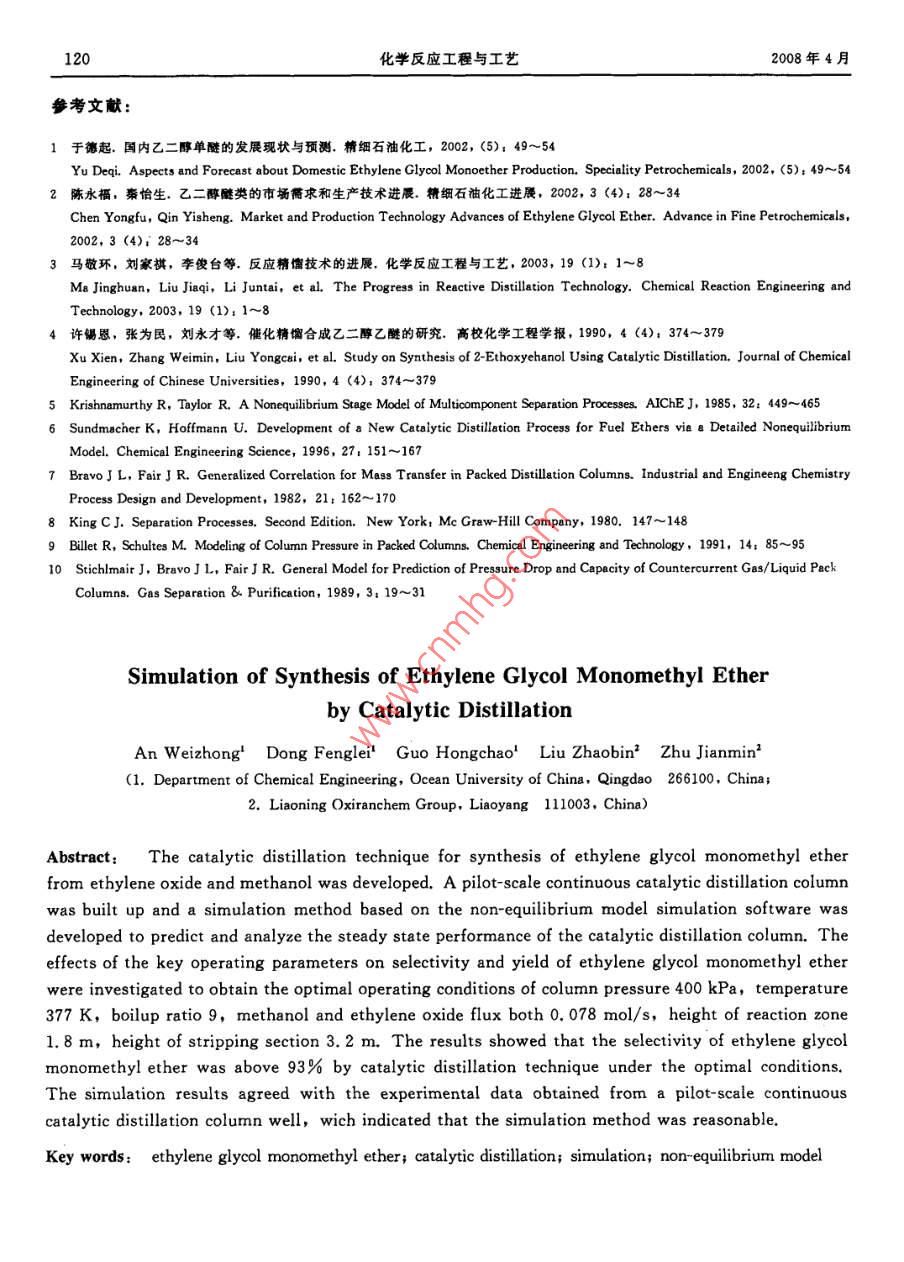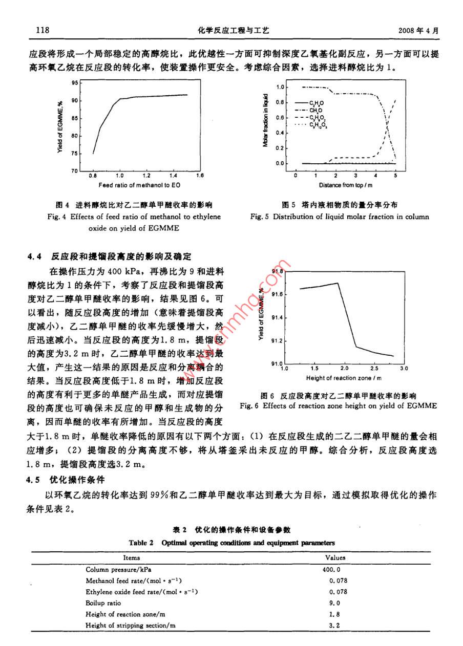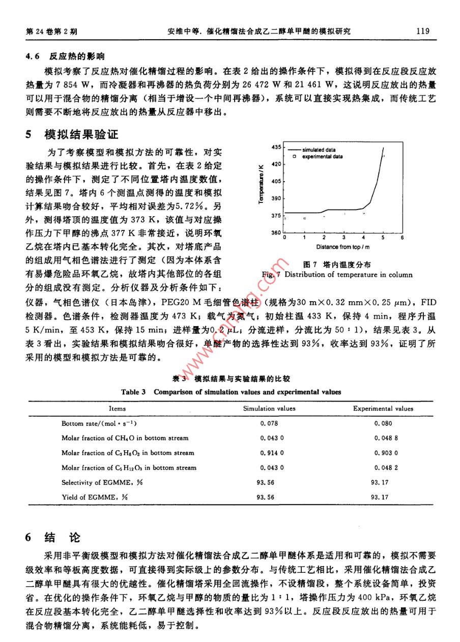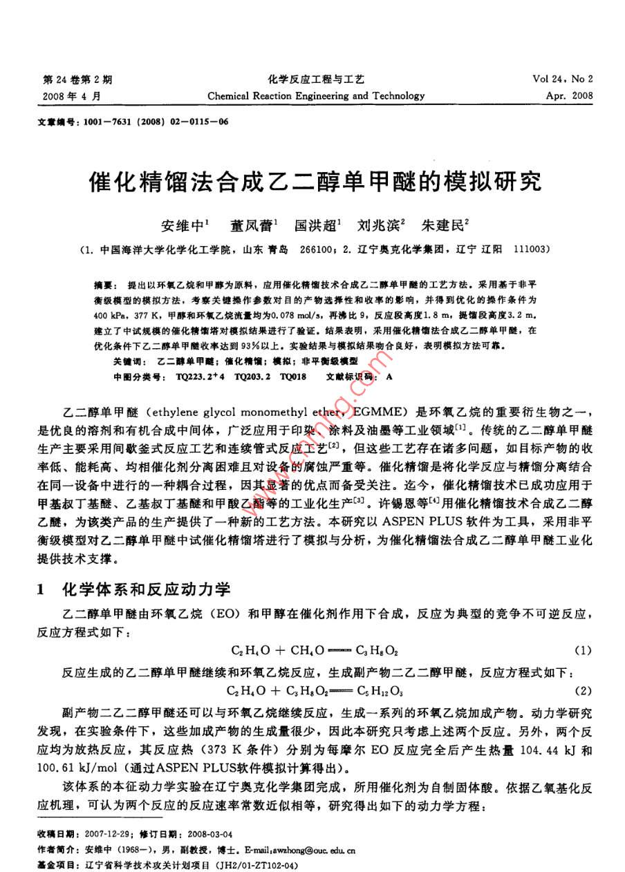 催化精餾法合成乙二醇單甲醚的模擬研究