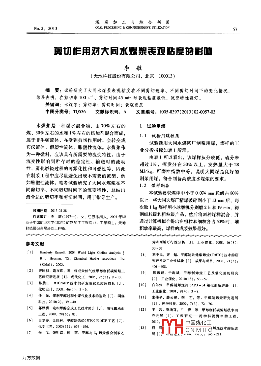 - 期刊名字:煤炭加工與綜合利用