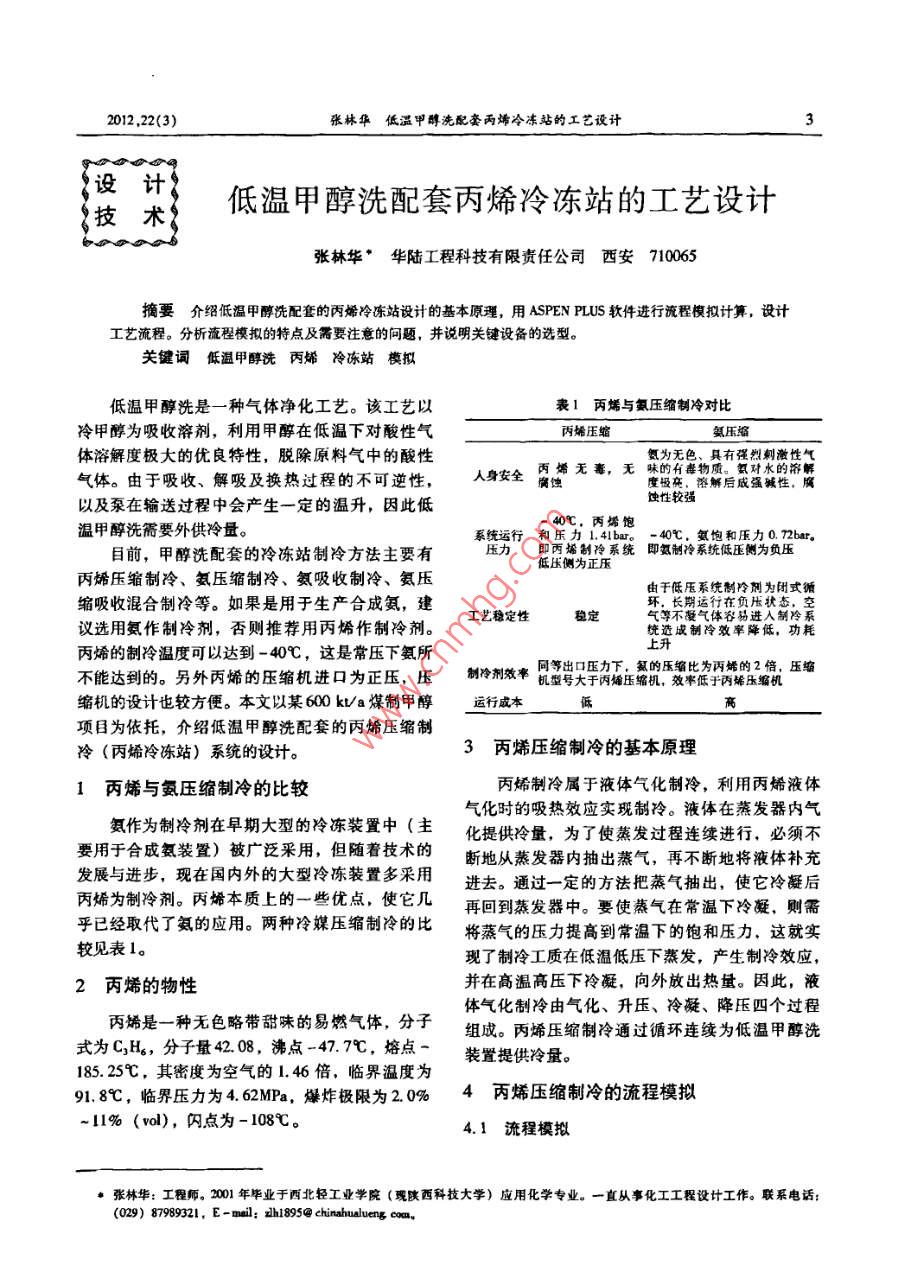 低溫甲醇洗配套丙烯冷凍站的工藝設(shè)計