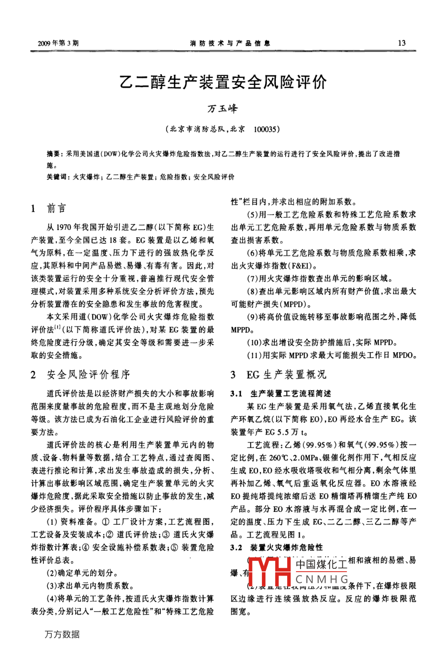 乙二醇生產(chǎn)裝置安全風(fēng)險評價