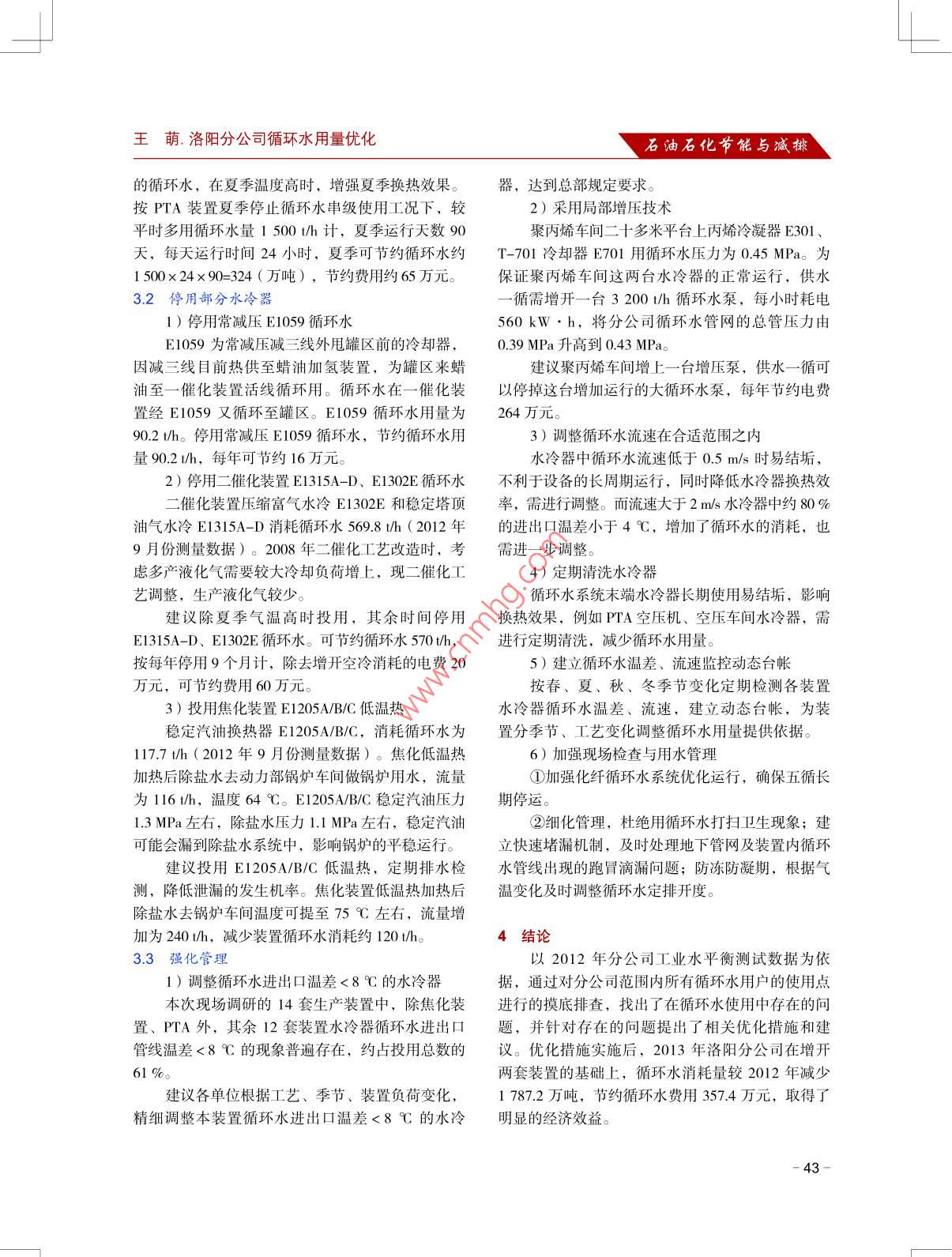 洛陽分公司循環(huán)水用量?jī)?yōu)化