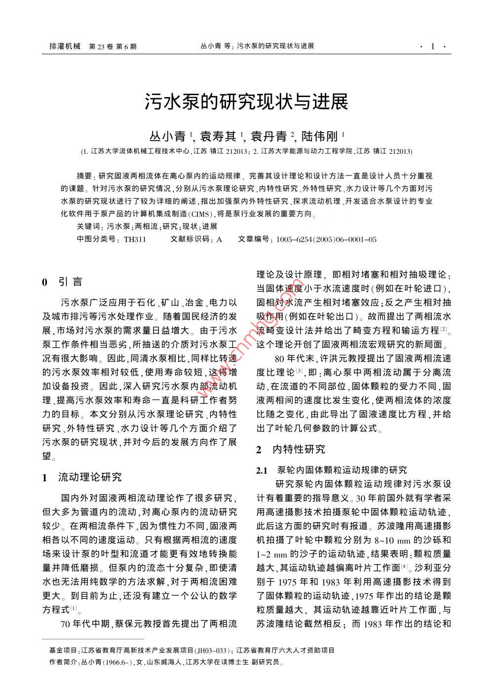 污水泵的研究現(xiàn)狀與進(jìn)展