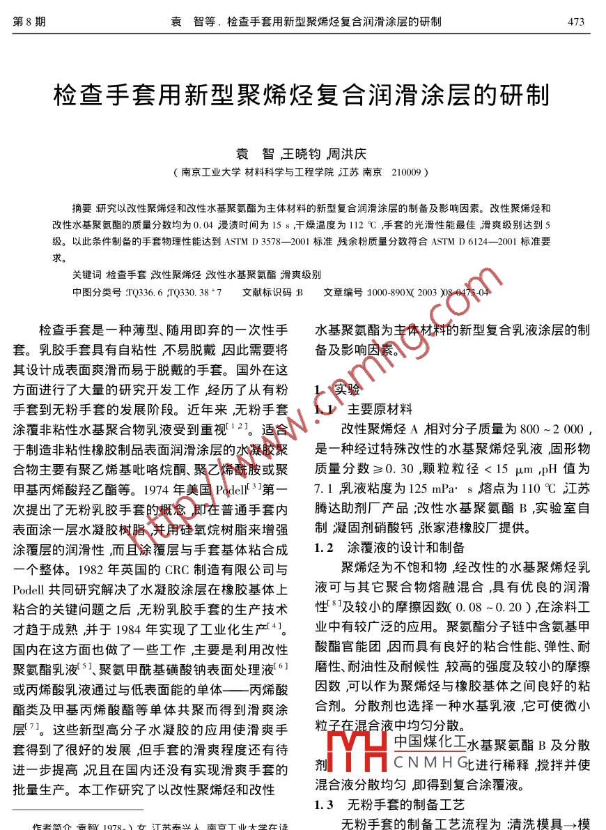 檢查手套用新型聚烯烴復(fù)合潤滑涂層的研制