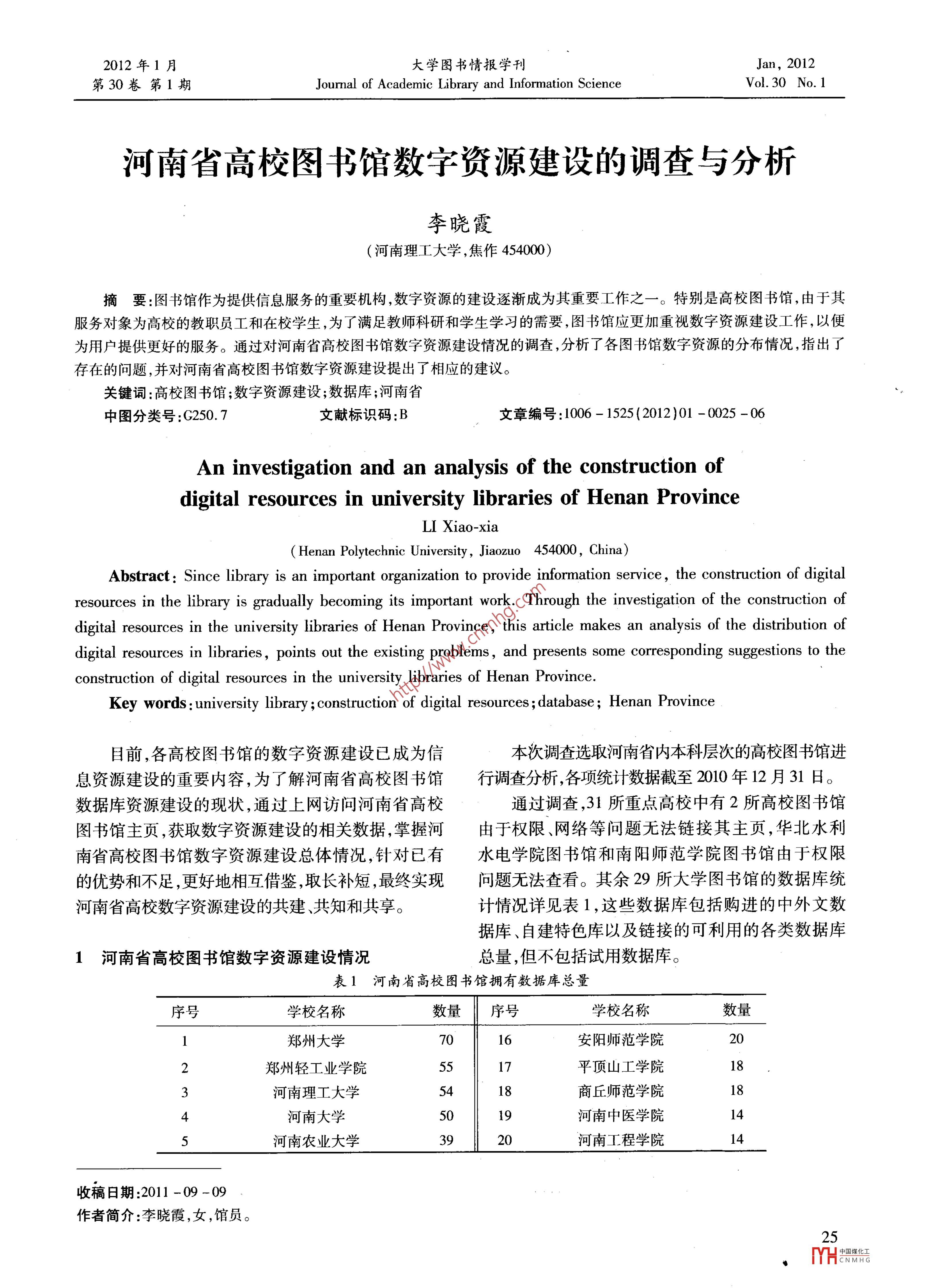 河南省高校圖書館數(shù)字資源建設(shè)的調(diào)查與分析
