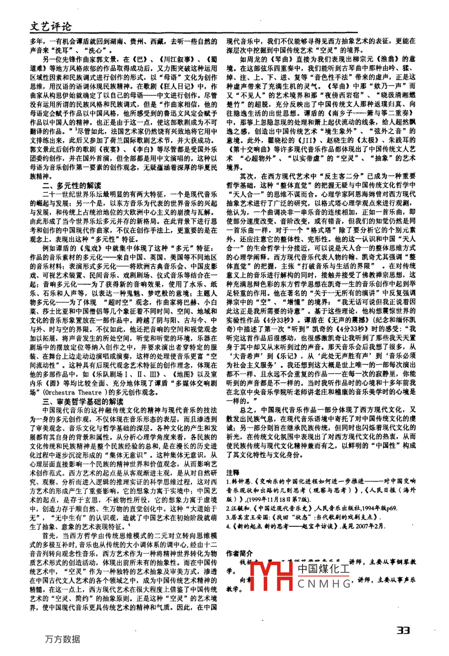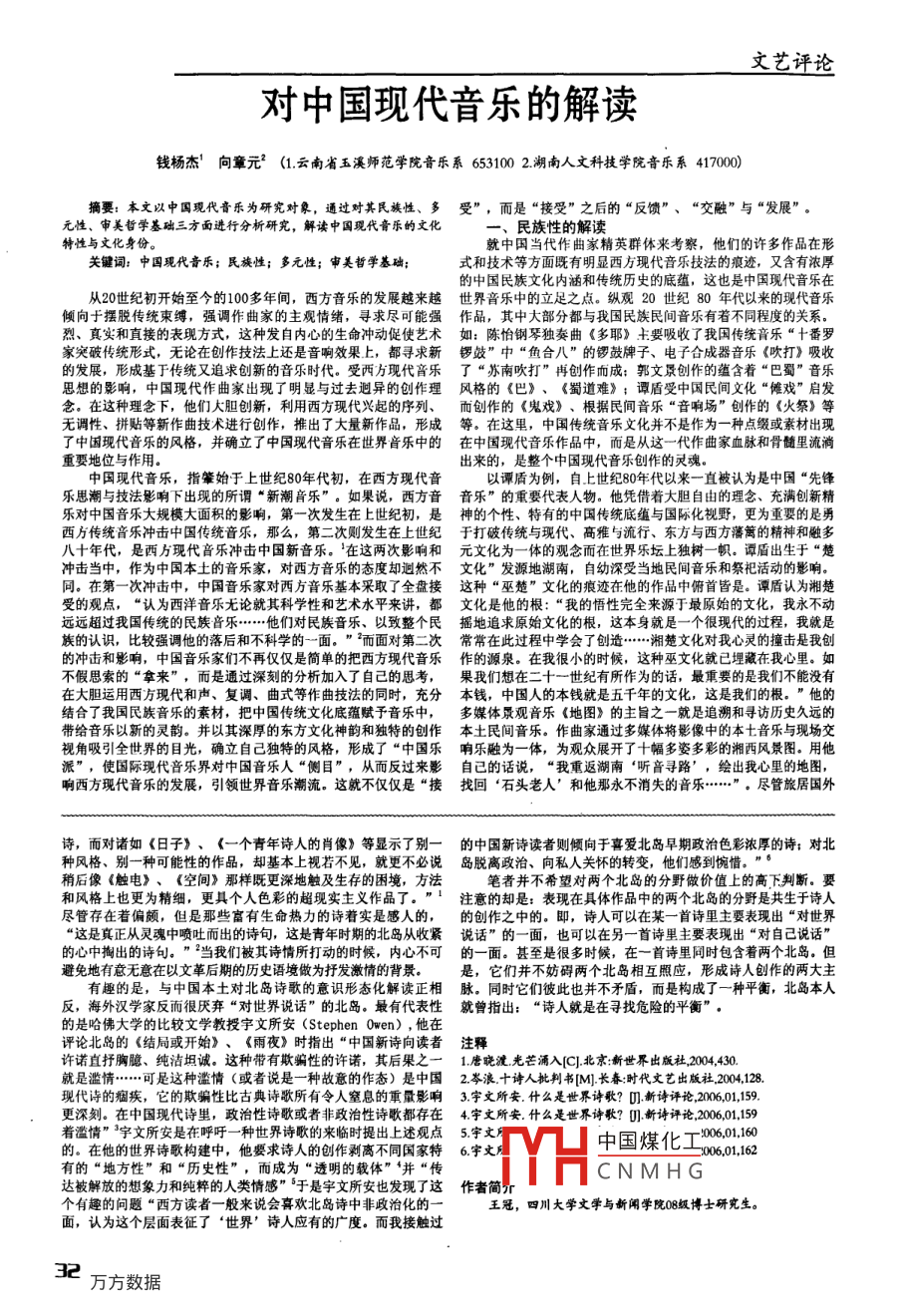對中國現(xiàn)代音樂的解讀