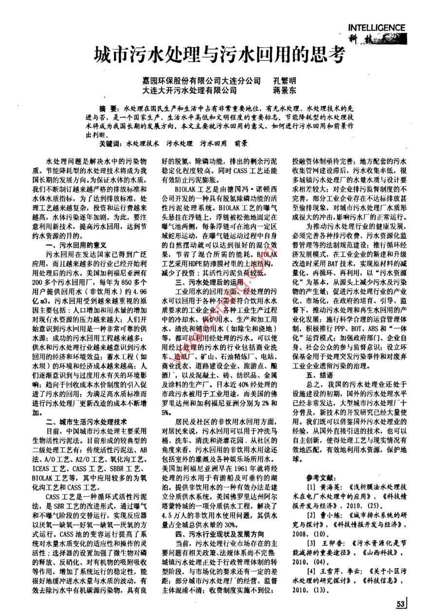 - 作者單位:嘉園環(huán)保股份有限公司大連分公司,大連大開(kāi)污水處理有限公司