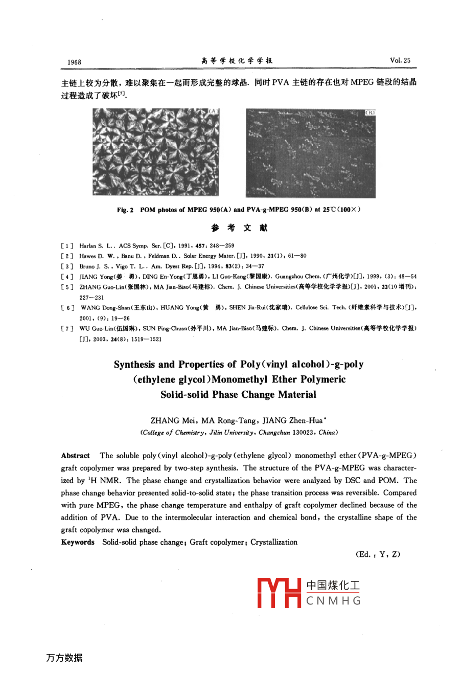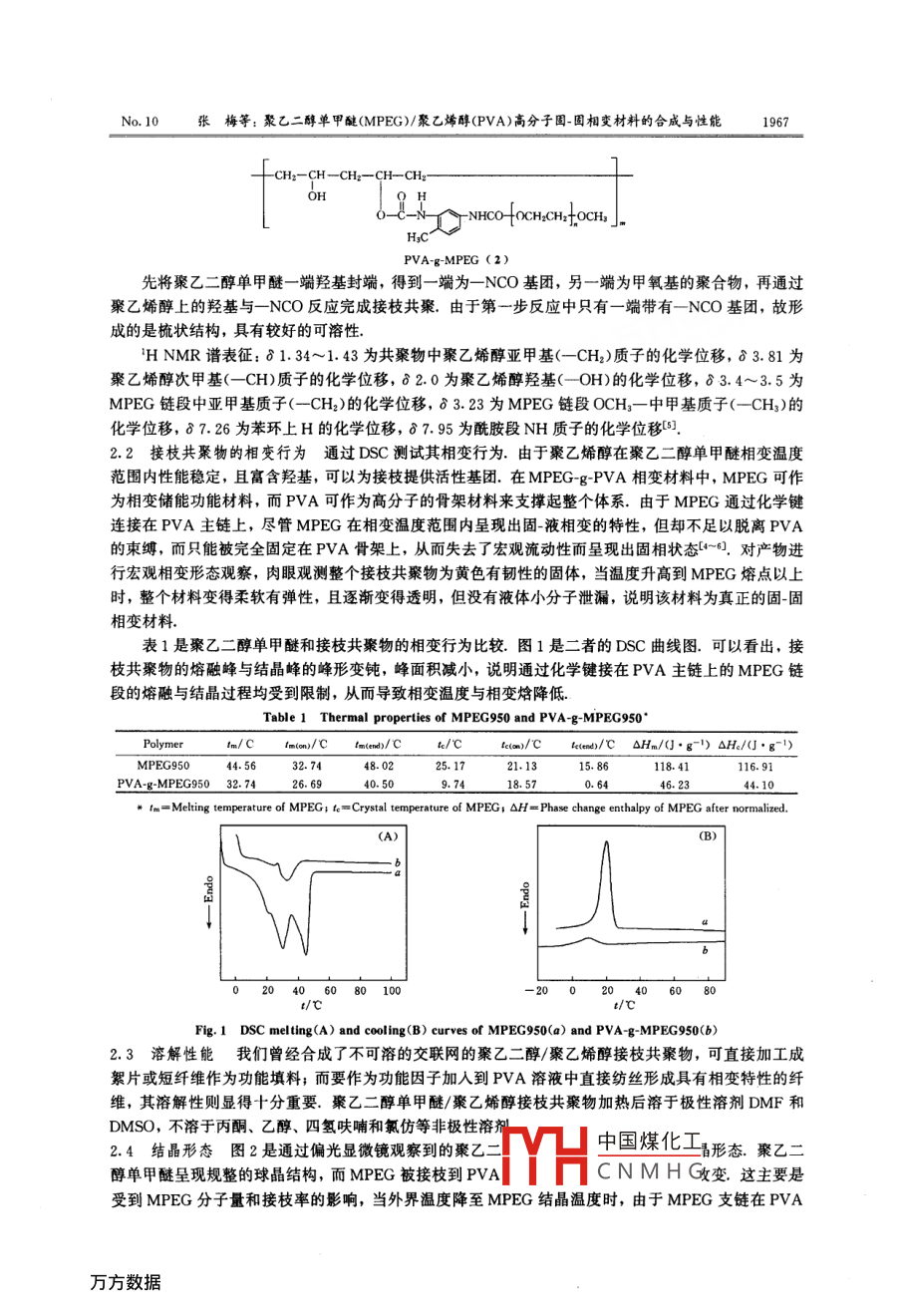 聚乙二醇單甲醚(MPEG)/聚乙烯醇(PVA)高分子固-固相變材料的合成與性能