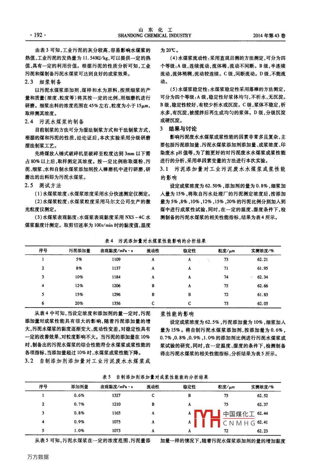 工業(yè)污泥廢水水煤漿成漿性的研究